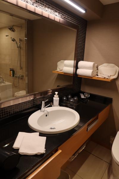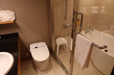 宿泊した部屋はソファベッドが付いたスタンダードツイン。奥行きのある部屋はコンパクトにまとまっており、清潔感があります。浴室はバスタブはなく、トイレとセパレートされたシャワールームがあるのみ。湯舟に浸かりたい方にはお薦めできません。