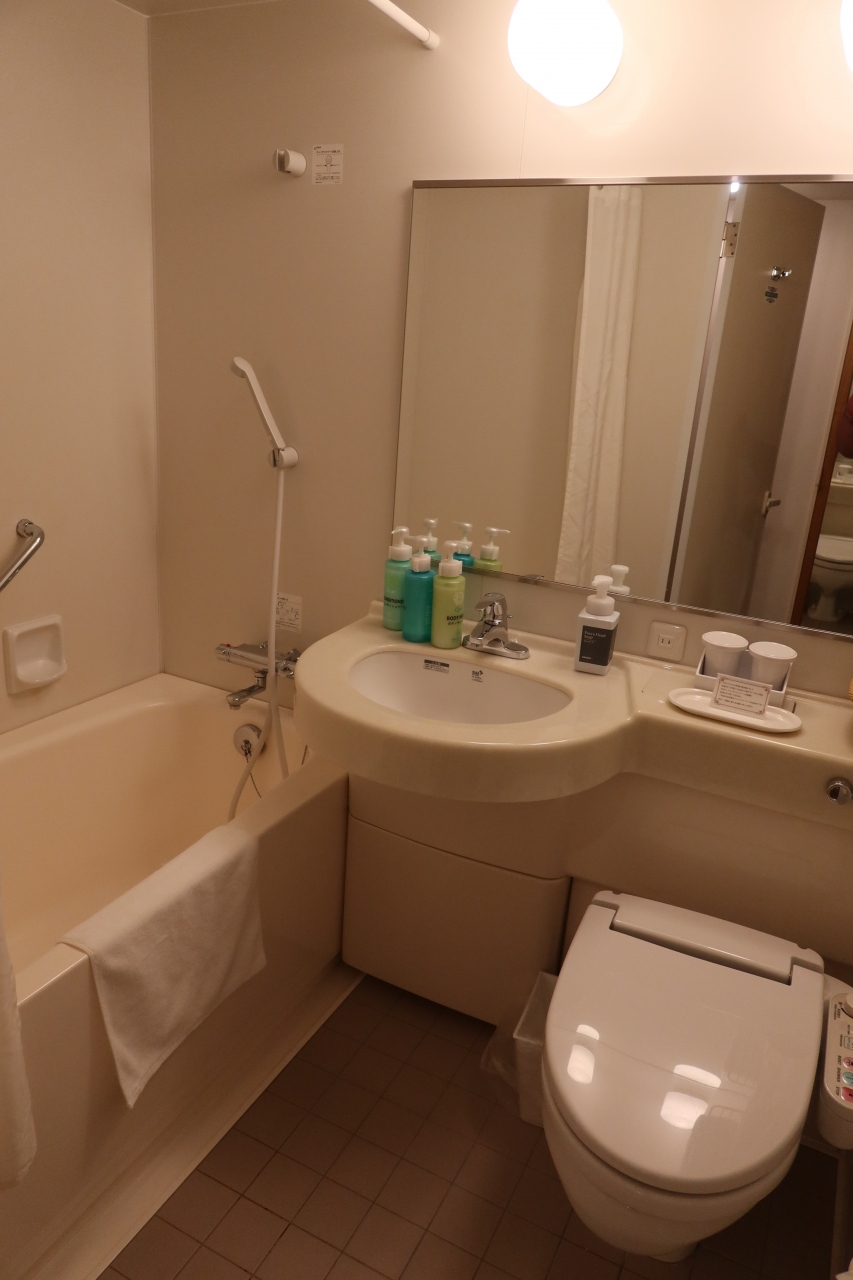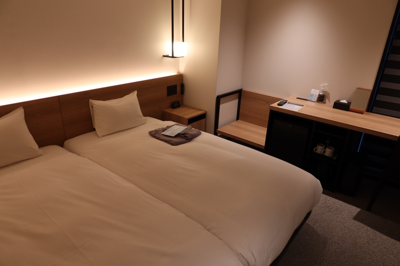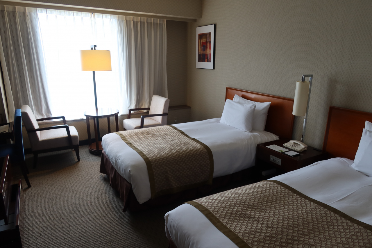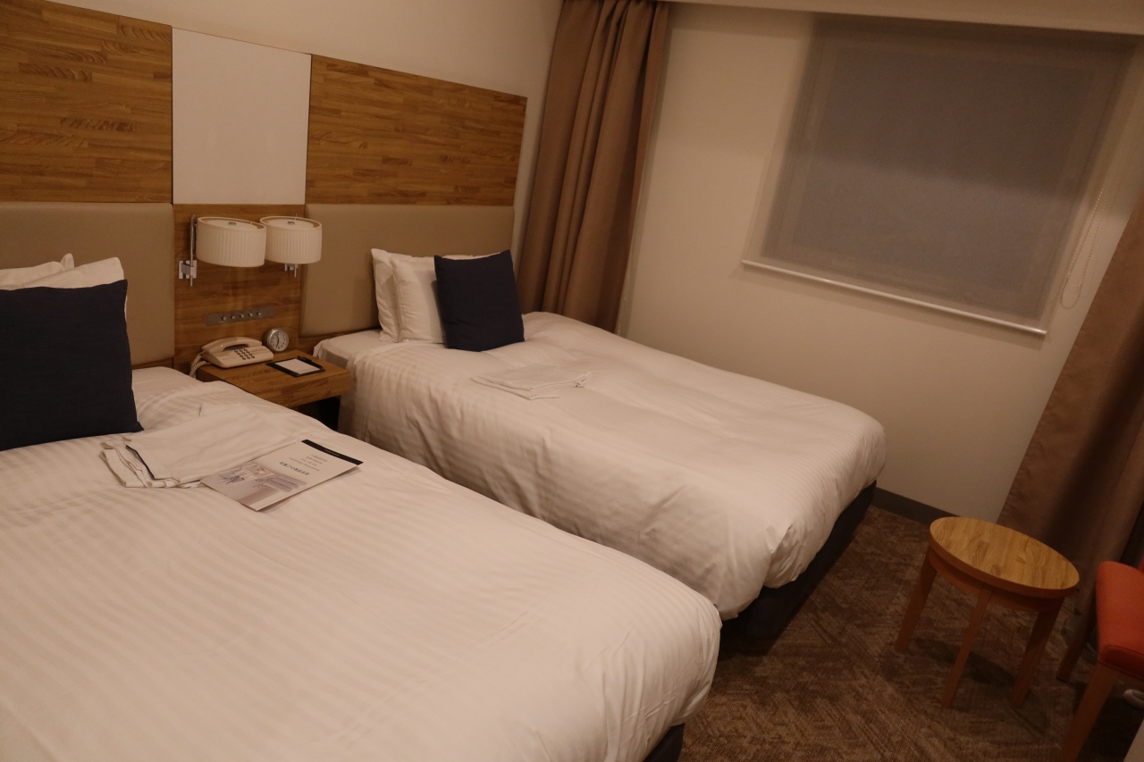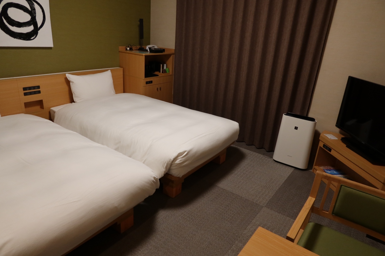 宿泊したのは8階のツインルームの部屋。部屋は17平米とそんなには広くはありませんが、トイレとバスルームはセパレートされており、また、室内の設備も新しく快適に過ごせます。