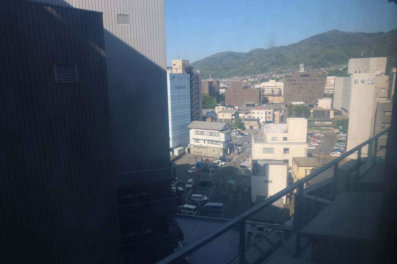 宿泊したツインの部屋は狭めですが、ベッド幅は広くゆっくり眠れます。1階にはコンビニがある点も便利、駐車場は裏手にあるウエストプラザ長野パーキングと提携しており、1000円/泊で停められます。