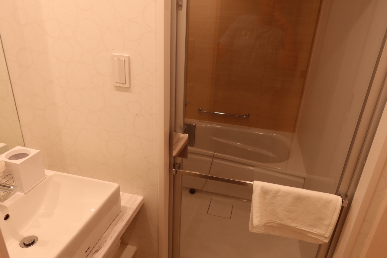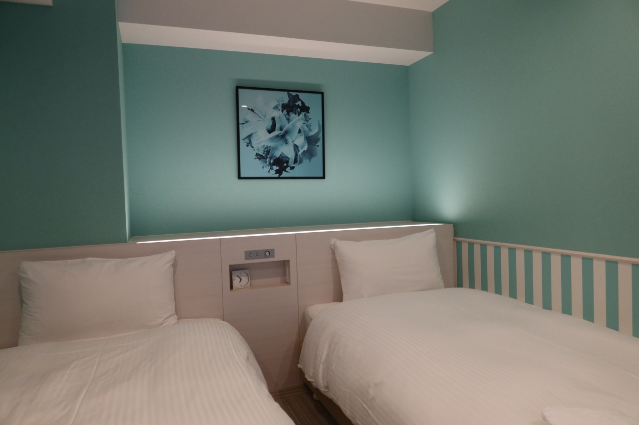 宿泊した部屋はソファベッドが付いたスタンダードツイン。奥行きのある部屋はコンパクトにまとまっており、清潔感があります。浴室はバスタブはなく、トイレとセパレートされたシャワールームがあるのみ。湯舟に浸かりたい方にはお薦めできません。