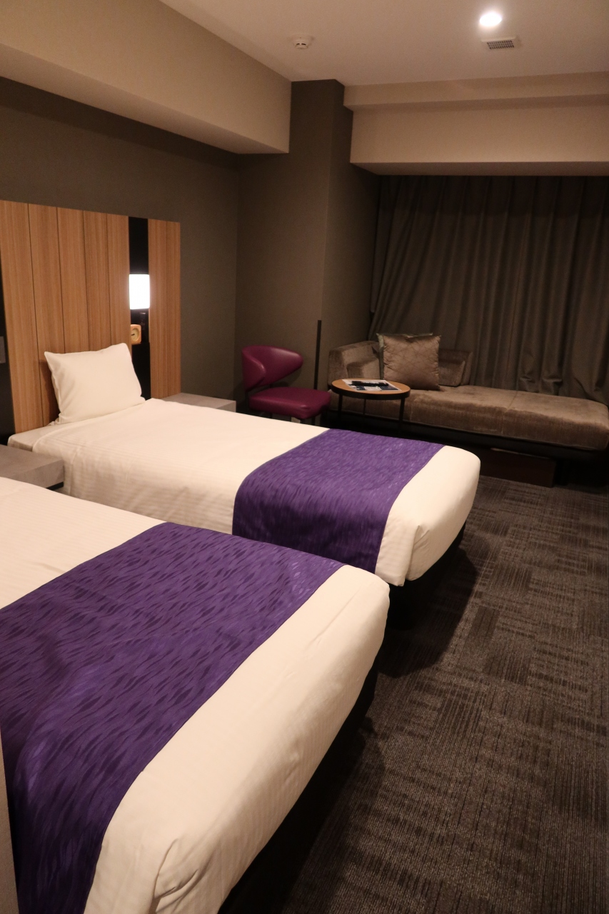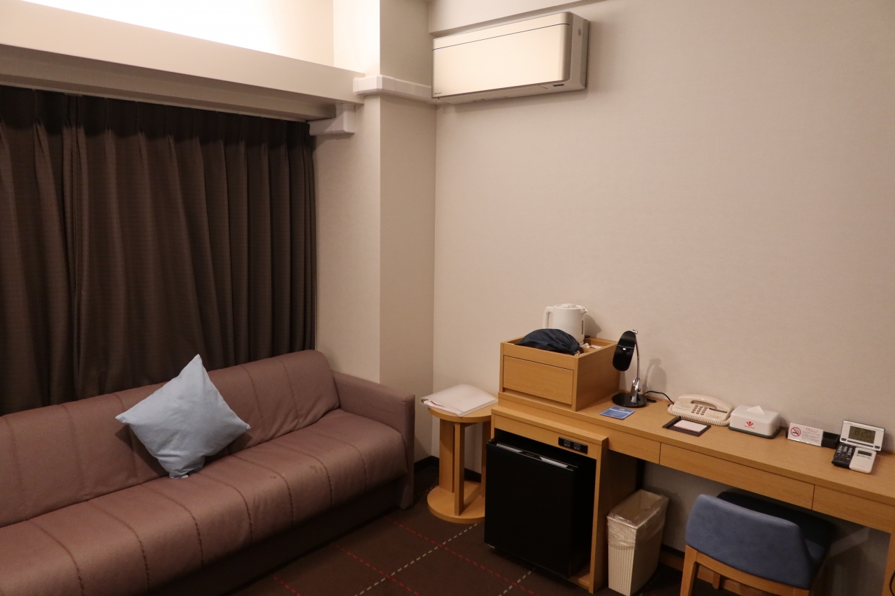 予約した部屋はスーペリアツインだったのですが、混んでいたのか無料でアップグレードしてくれました。ビジネスホテルの倍程もある広い部屋にはテーブルやソファーが置かれ申し分ないほど快適。ソファーではもう一人寝られる程の大きさ。