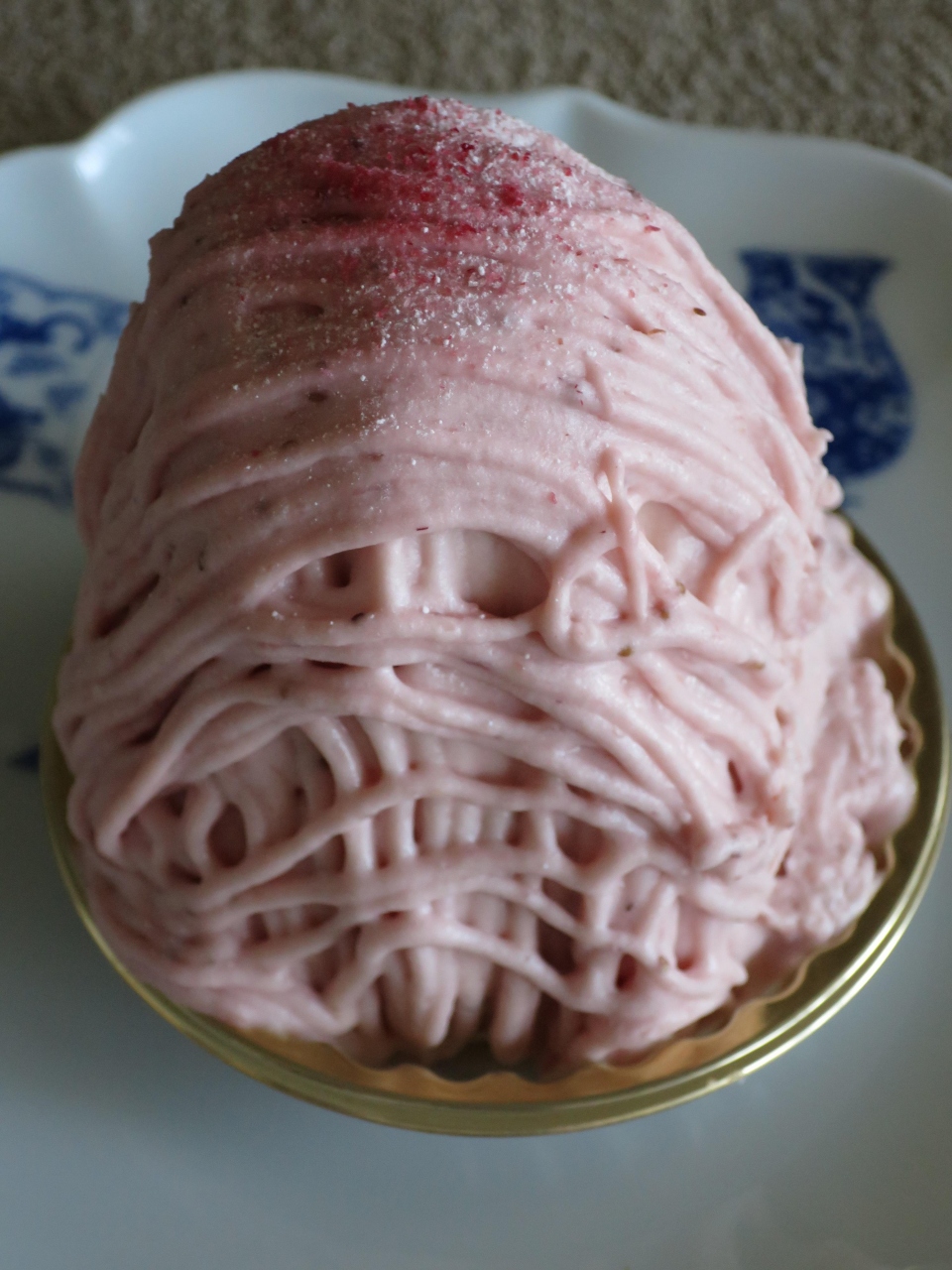 モンブランが美味しいと聞いていましたが、栗のモンブランは時期的になく、代わりに有機苺のモンブランとショートケーキを買いました。ショートケーキは不通に美味しかったですが、有機苺のモンブランはとっても美味しかったです。メレンゲの上に有機苺が入った生クリーム、それを苺クリームが包んでいます。こんなモンブランはこれまで食べたことがなく特にお薦めのケーキです。- 旅行時期