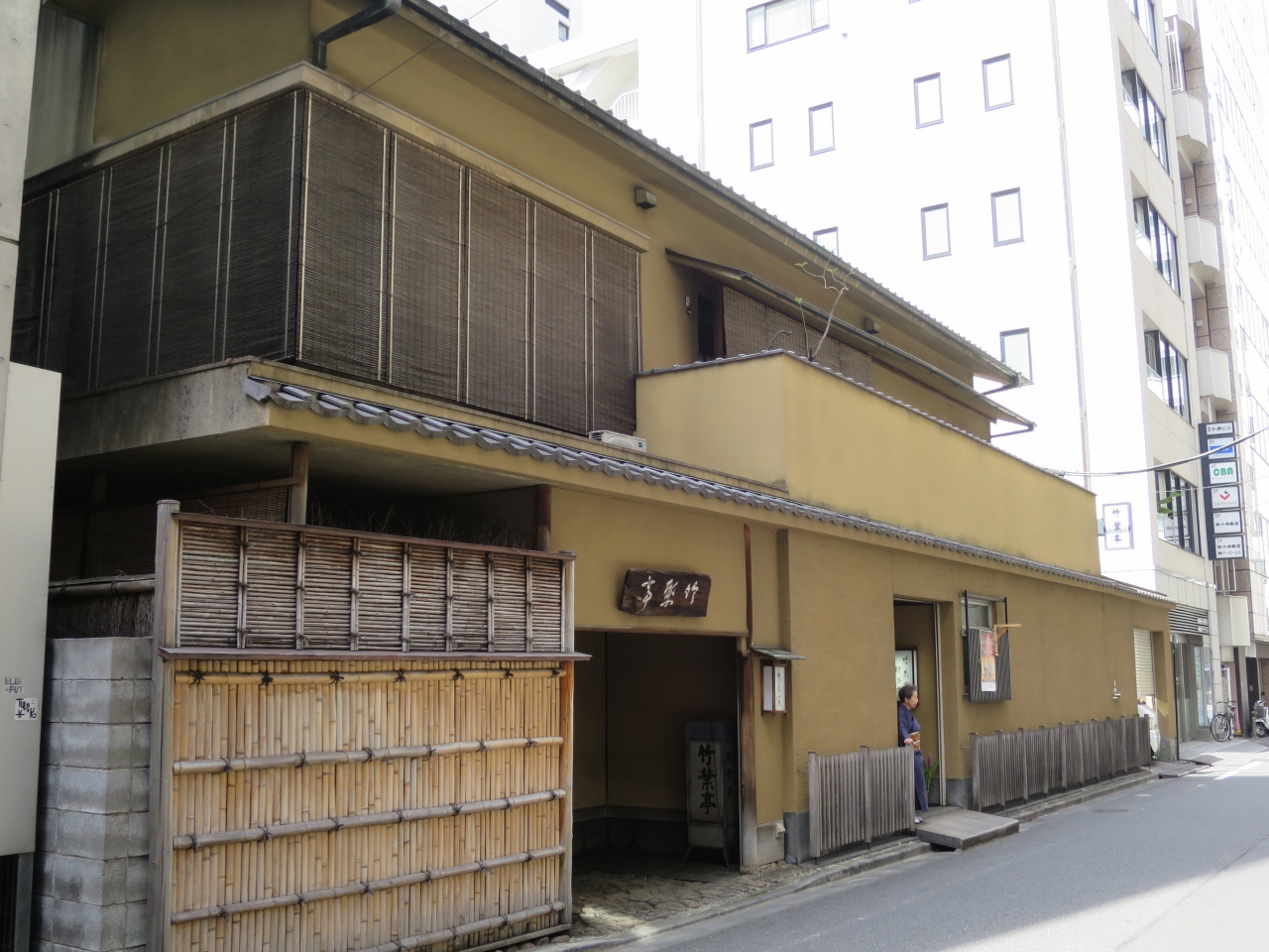 新橋駅から築地方面に歩いて7分程の銀座8丁目の裏路地に竹葉亭 本店があります。