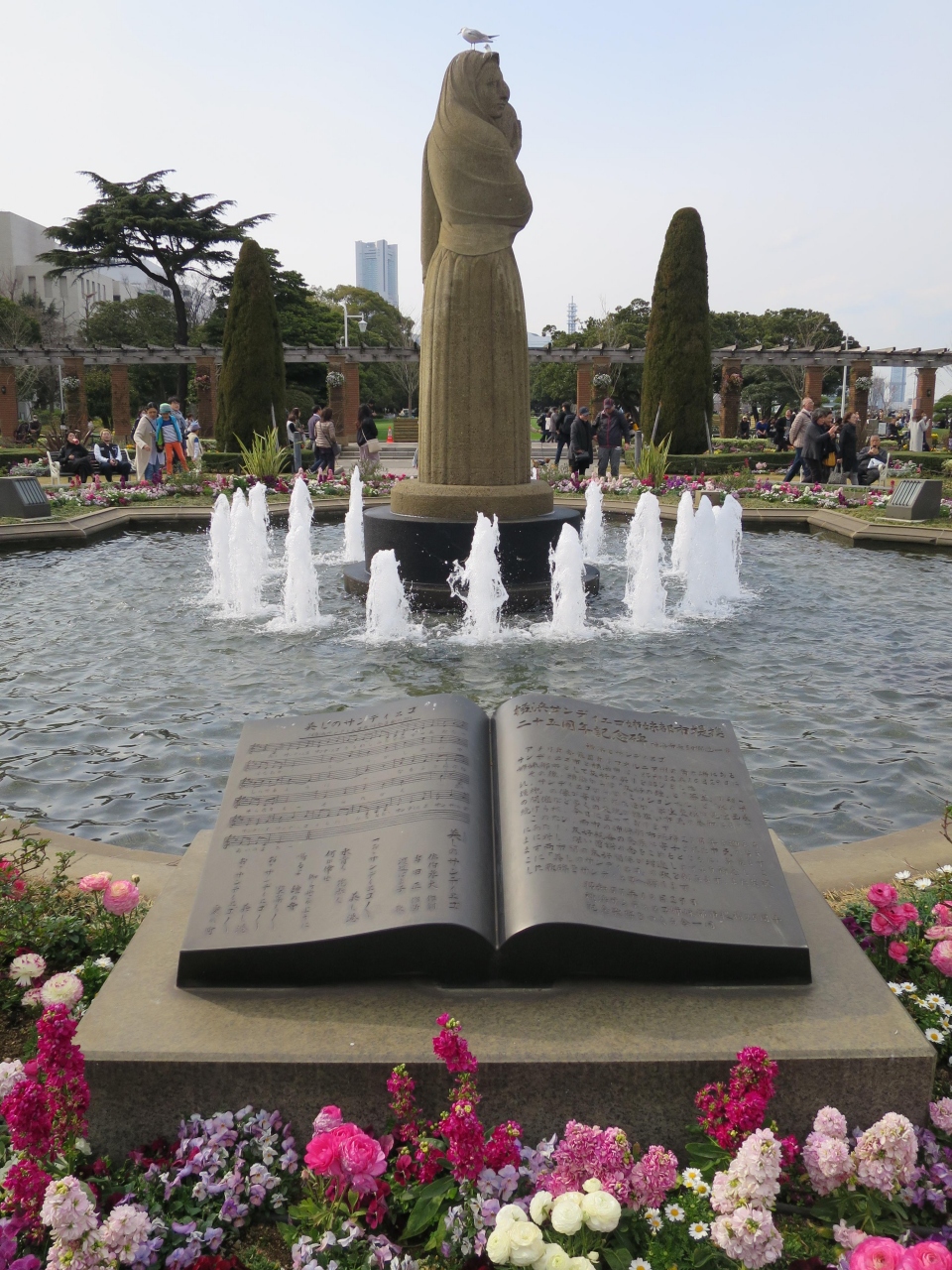 山下公園には多くの記念碑があり、この像は何かなと近寄ってみると、アメリカガールスカウト50周年、日本の本連盟の世界連携加入を記念して昭和37年に建てられた意外と古い像でした。像の下には「やくそく」と書かれていました。