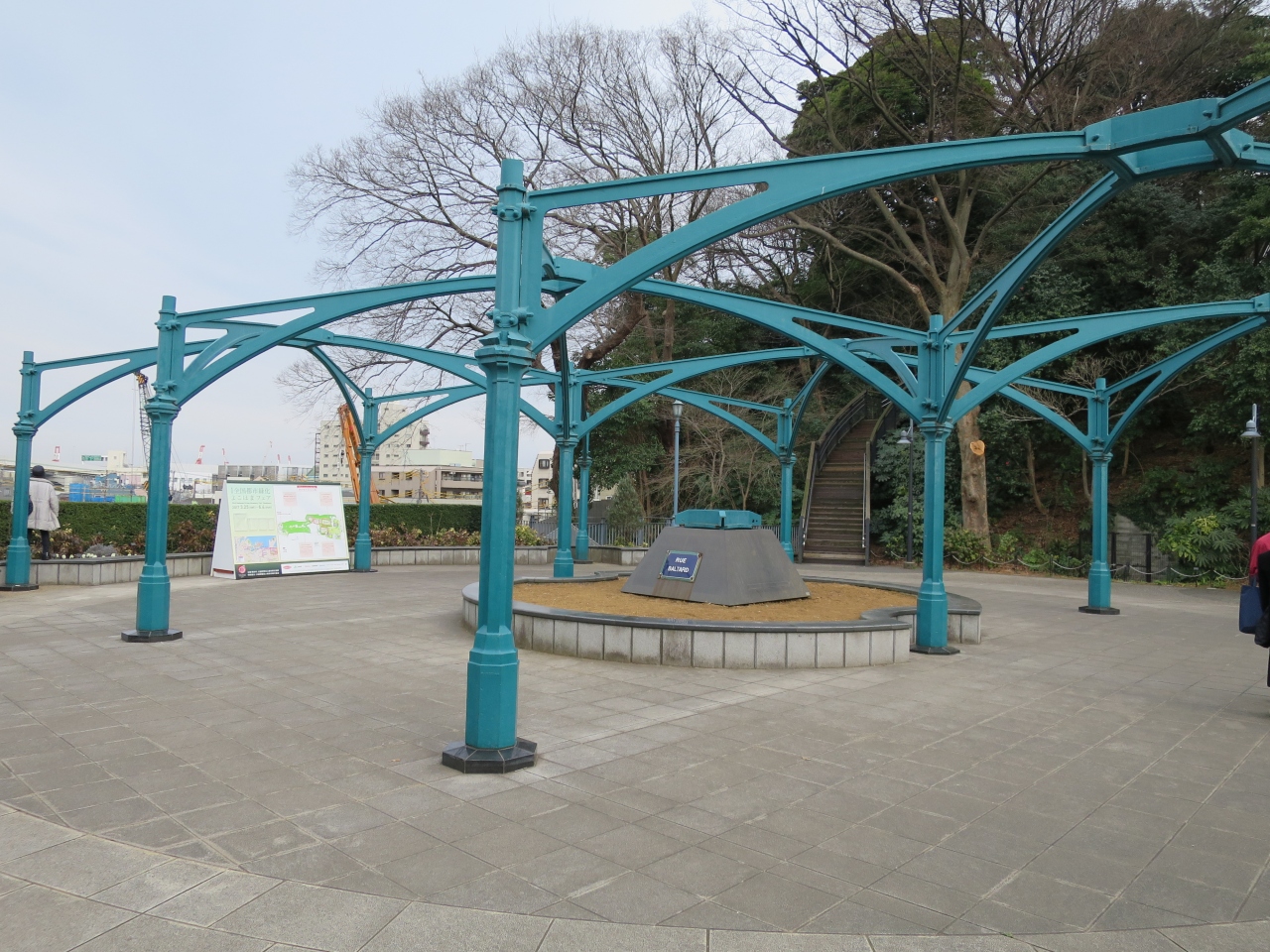 港の見える丘公園のフランス山の下側にある広場に古い鋳鉄製骨組みがあります。これがパビリオン バルタール。フランス山にあった建物の骨組みかと思ったら、パリ中央市場が解体される際にその骨組みをわざわざ譲渡してもらい、フランス領事館のあったこの場所に移設したものでした。