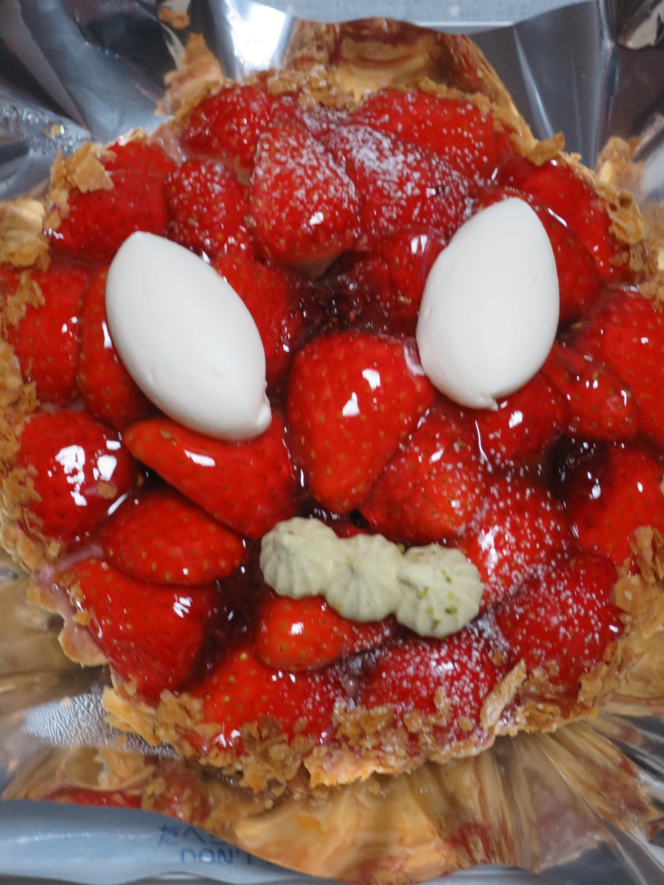 カヌレを買って帰ろうと思っていたのですが、生ケーキも食べてみたい思い、丁度その日に帰るので、贅沢にイチゴのタルトをホールで購入し土産にしました。