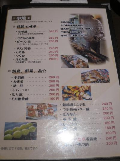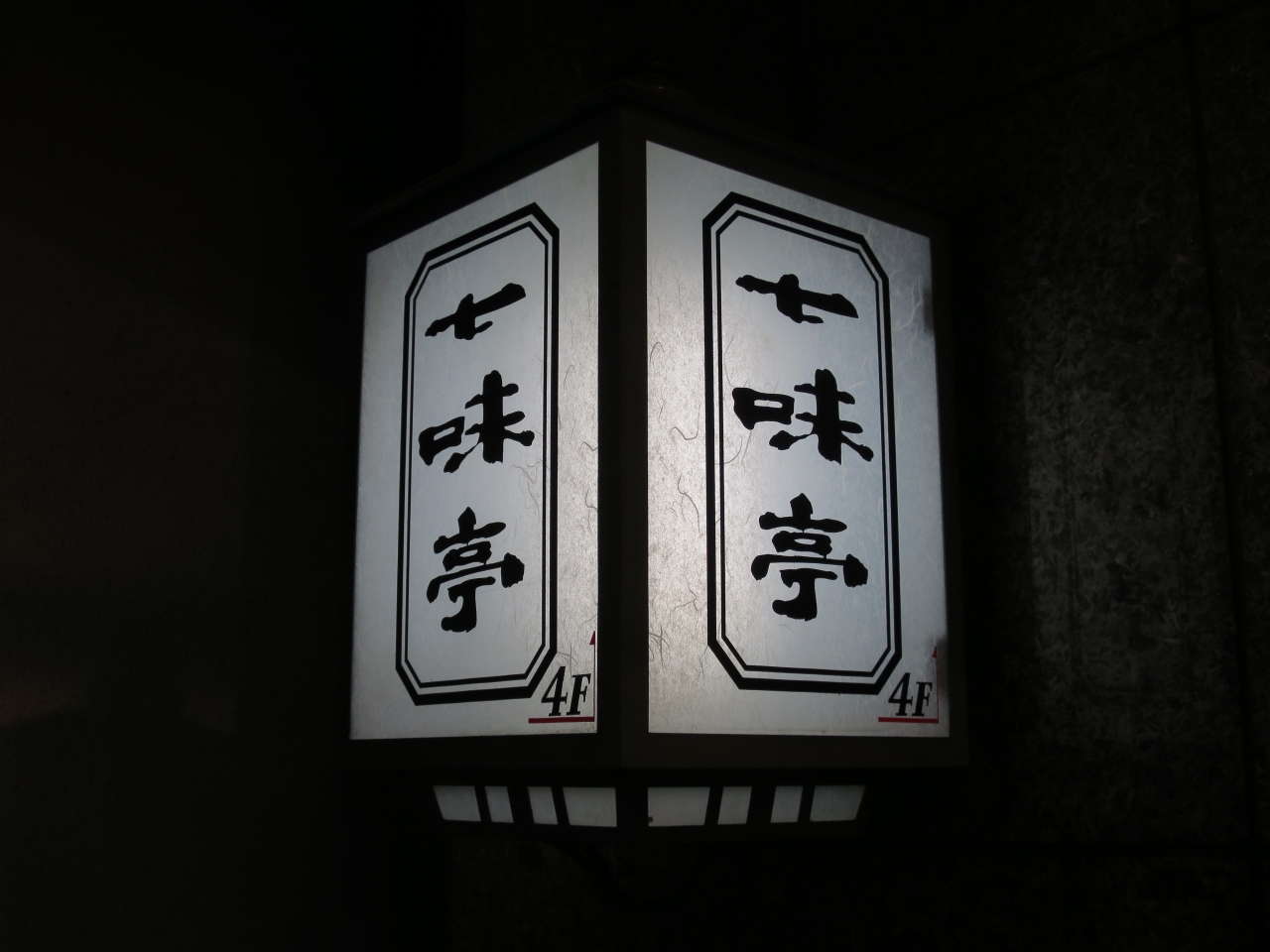 自由が丘駅からみずほ銀行の脇の通りを先に行った先にある十字路角のビル4Fに七味亭はあります。自由が丘で30年以上続く串焼きの店だと聞き行ってきました。