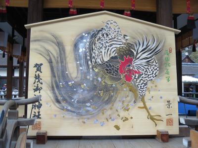 本殿は遷宮で新しく綺麗になっていましたが、目を引いたのは本殿前にある舞殿に飾られていた大絵馬。描かれていたのは酉年に因んだ尾長鳥。こんな大きな大絵馬が飾られている神社は初めてです。- 旅行時期