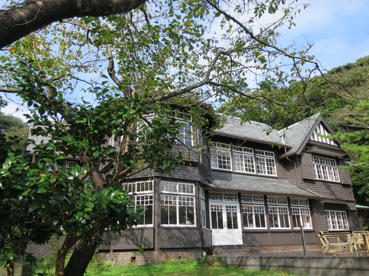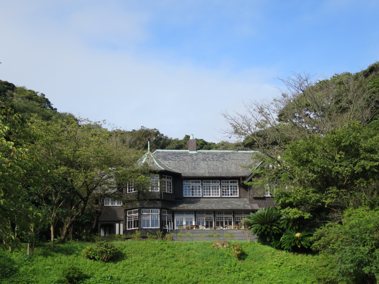 今回レストランとしてオープンし、予約してランチを食べに行きました。洋館は入口から少し坂を上った所に建ち、とっても素敵な雰囲気。席に着くと空席はなく、予約なしの客は断っている程の人気ぶりでした。今回7000円のコースを頂きました。テンポよく料理が出されせっかちな私達には丁度良く、料理も正統なフレンチで景色を見ながら贅沢な気分を味わえました。