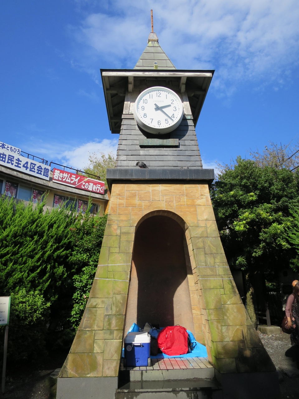 鎌倉駅西口にある鎌倉駅旧駅舎時計台の左手に生垣に埋まるような形で小さな碑が建てられています。それが古都鎌倉を戦災から救った男 ラングドン ウォーナーの碑です。