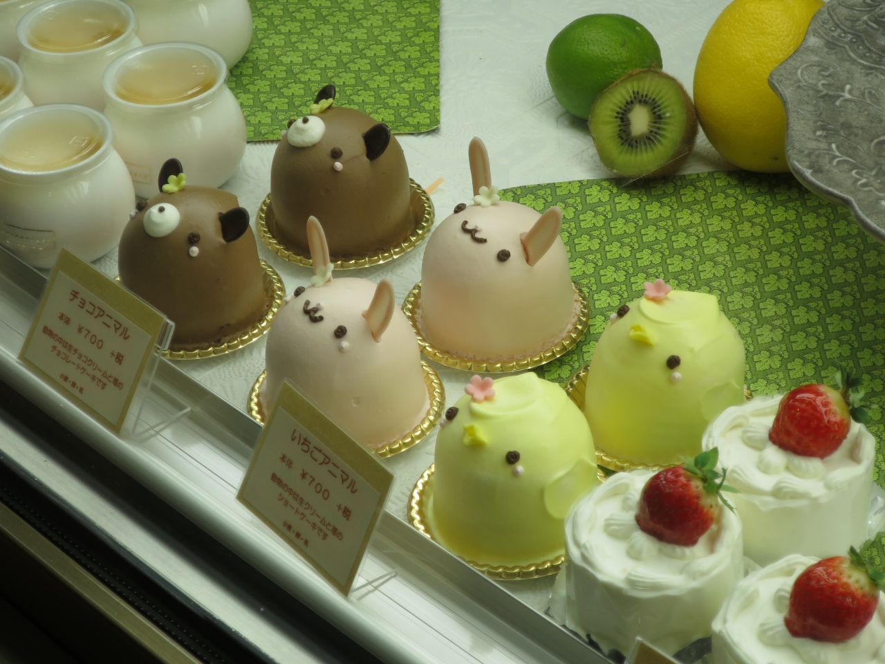 お店はファンシーな雰囲気でウェディングケーキ等も作っていますが、カットケーキも売っており、クマやウサギの形をした可愛いケーキなどもあります。