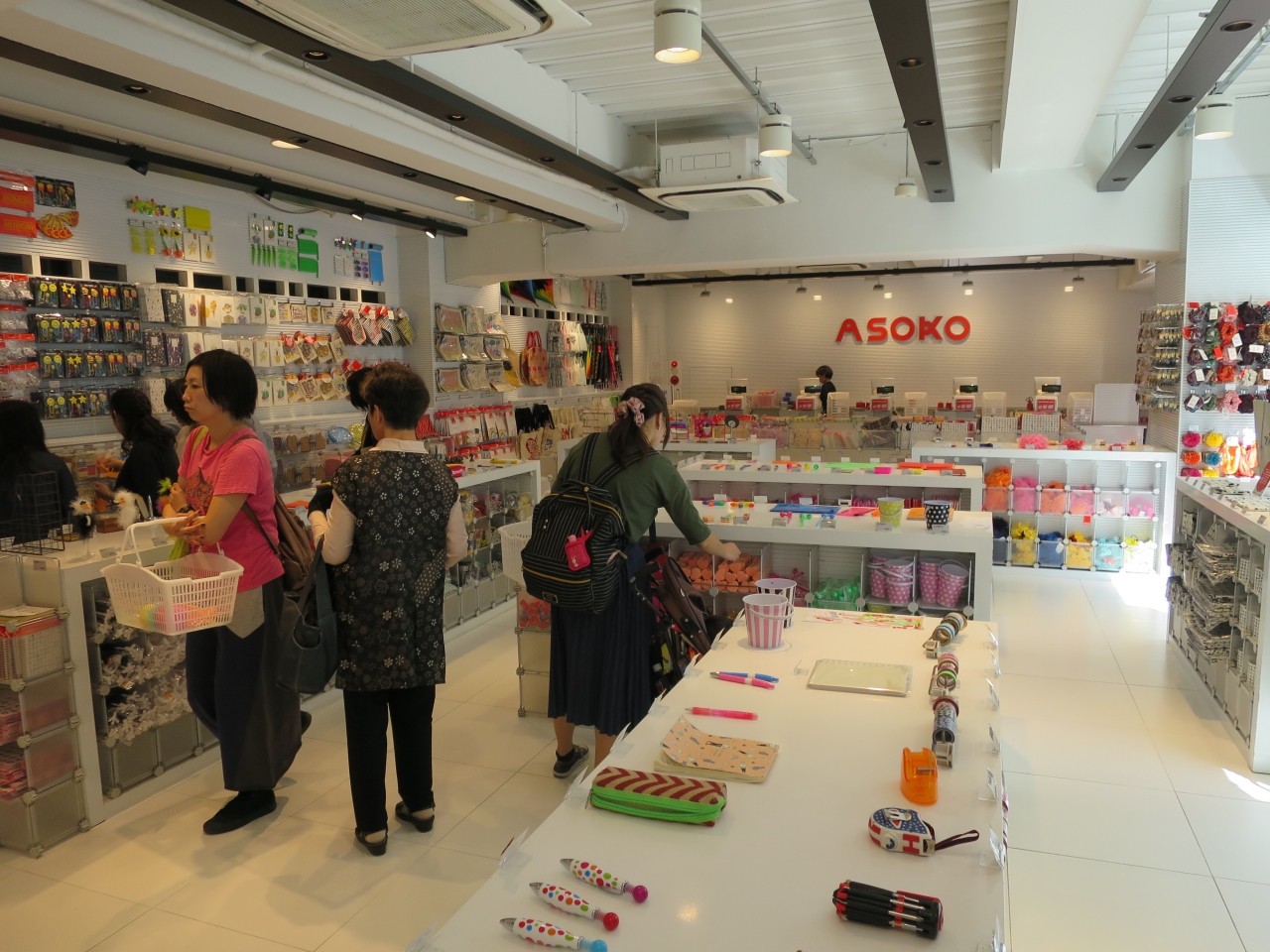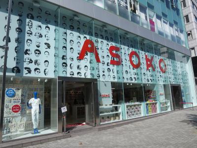 原宿の明治通りを渋谷方面に200m程歩いた右手に大阪発の雑貨店ASOKOがあります。白地に黒で描かれた人の顔のがいくつも並ぶがらの上に赤い文字でASOKOと書かれた看板が印象的です。大阪感たっぷりの商品ばかりだと思っていたのですが、そのような商品は一部で、見たこともない様なカラフルな雑貨が、原宿じゃ考えられない激安価格で売られています。商品によっては100金と変わりません。
