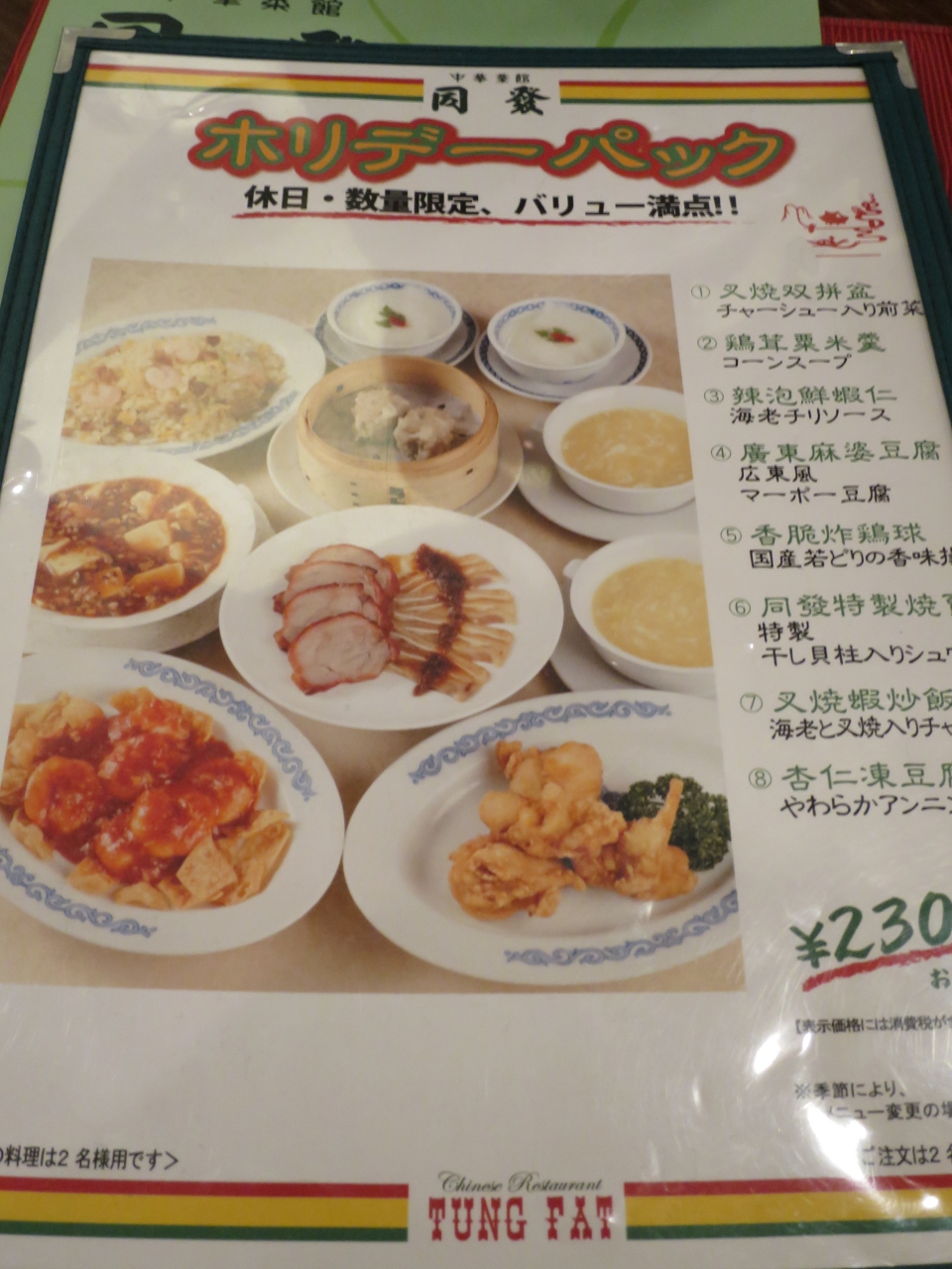 週末に行くならばホリデーパックがとてもお得です。前菜、コーンスープ、エビチリ、麻婆豆腐、鶏から、焼売、炒飯、杏仁豆腐がついて、何と2300円/人。コストパフォーマンスがとてもGood。中華街では最近食べ放題の訳の分からない店が多いですが、老舗の店でこんなにパフォーマンスが良いとはびっくりです。- 旅行時期