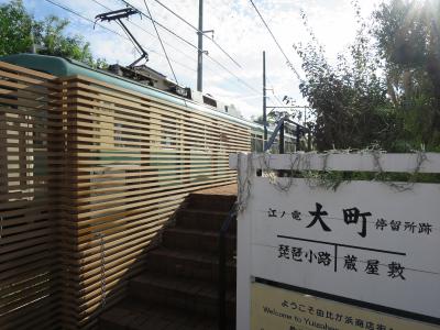 鎌倉駅西口から御成通りを歩き由比ヶ浜通りにぶつかった所にある踏切の右手に江ノ電ビューポケットパーク (江ノ電大町停留所跡)があります。1944年まで大町停留所があった場所でとても小さな公園です。裏にレストランがありどこまでが公園なのかちょっと分かり辛いです。この場所からは踏切を左に曲がりながら通り抜ける江ノ電を撮影し易い場所ですが、それ以外は何も良い所は有りません。