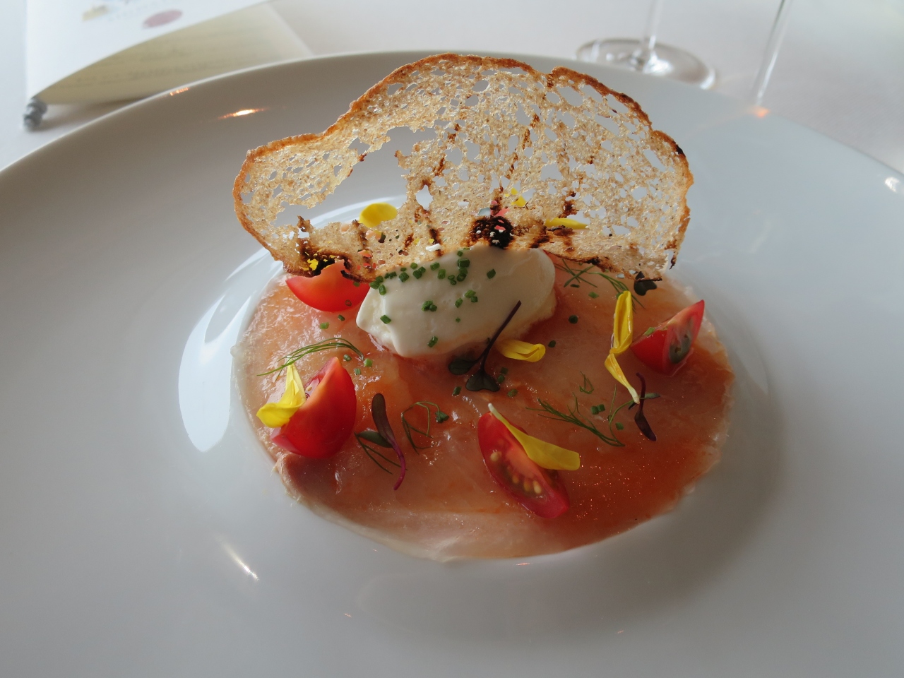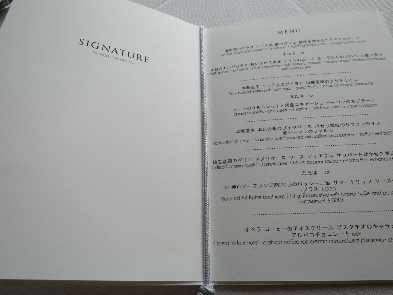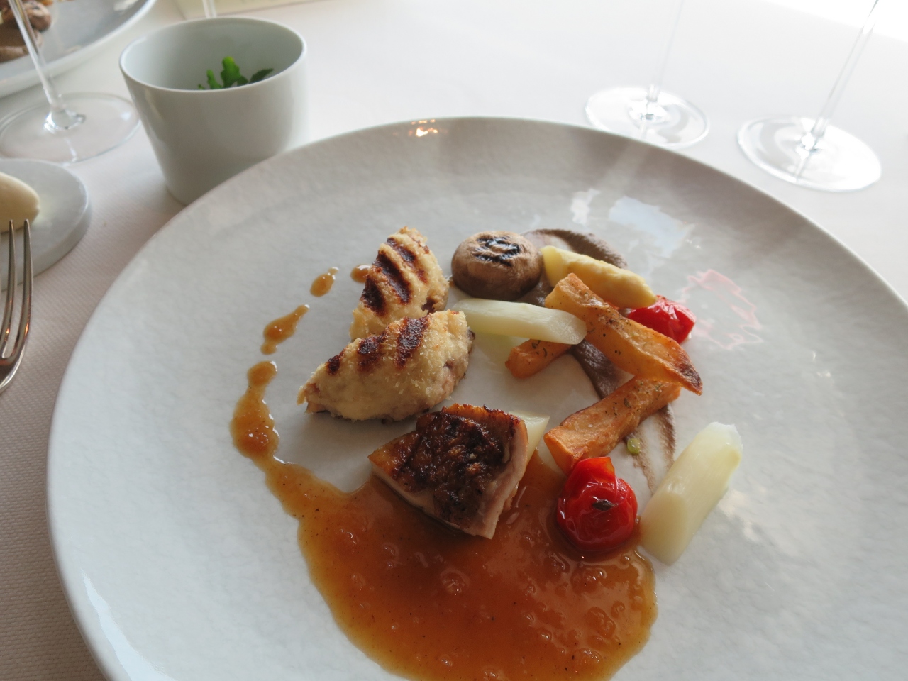 全6品のコースを頂きました。どの料理も洗練された味で流石ミシュランレストランです。特に半熟卵とにんにくのブイヨンが美味しかったです。- 旅行時期