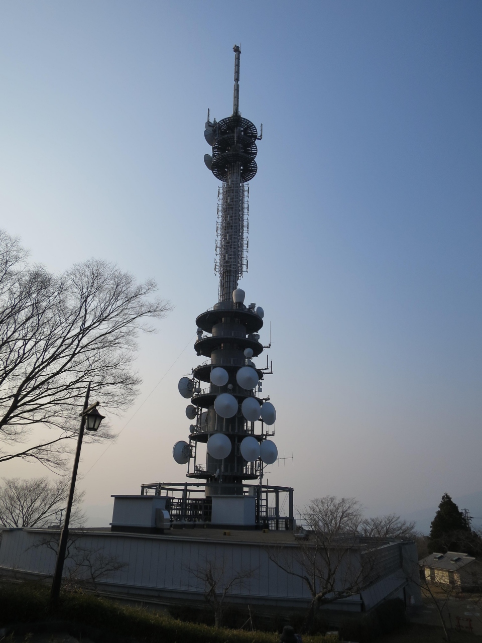 清水の名所 日本平のなだらかな山頂の丘にある電波塔。正式名称は日本平デジタル放送所です。2011年のデジタル放送化に向けて2004年に建てられた塔でパラボラアンテナが塔の上下に飾りの様につけられてデザイン的に面白いですが、上ることも出来ず、下から見上げるだけです。