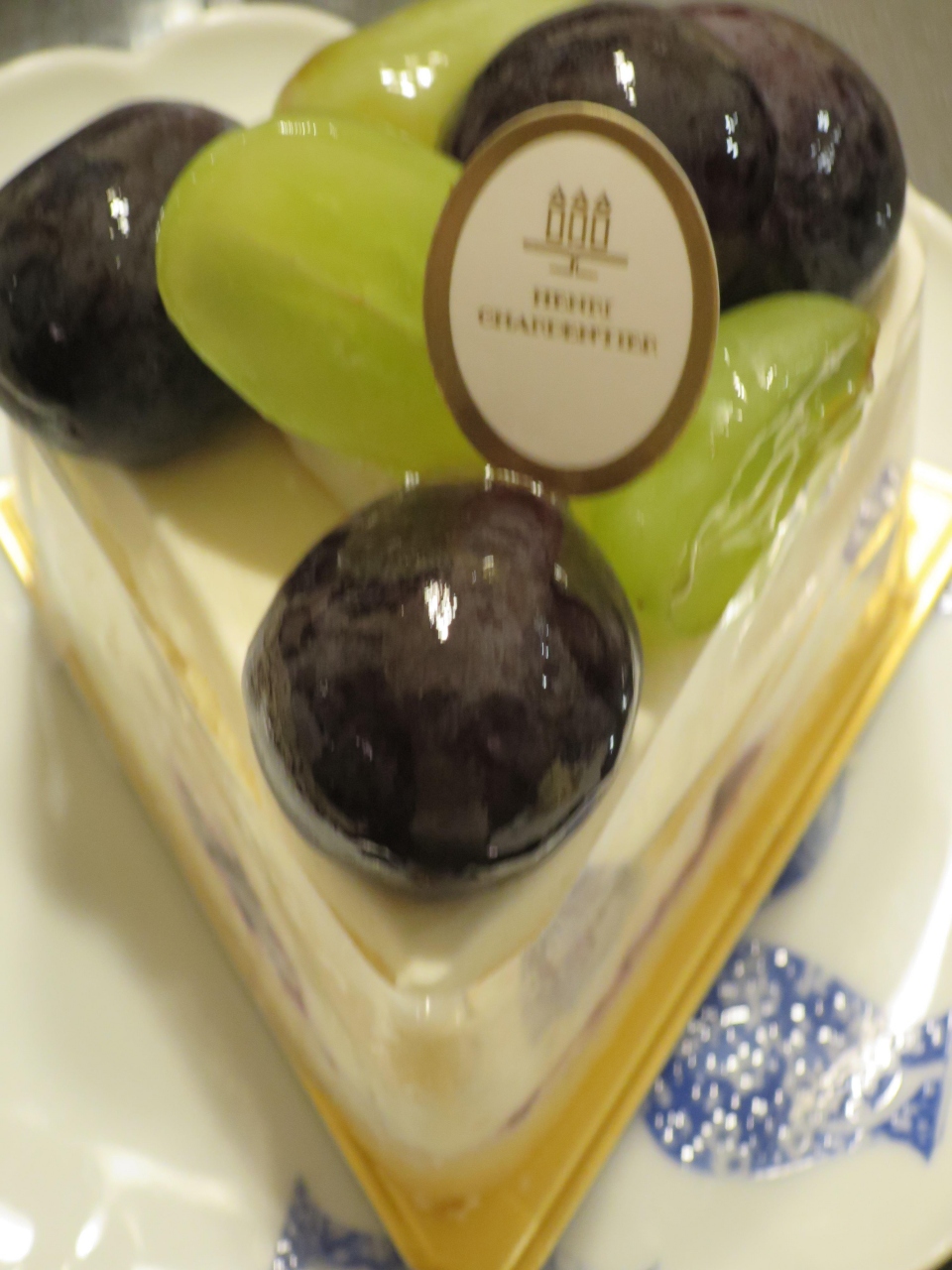 食材を買いに行った際にたまたま前を通ったときに、ブドウの乗ったショートケーキがとても美味しそうだったので、買う気はなかったのに、つい購入してしまいました。