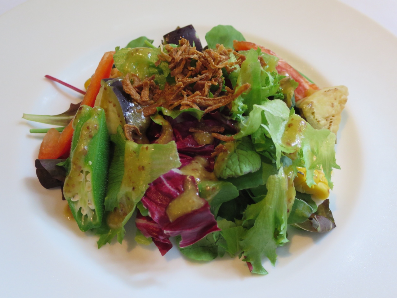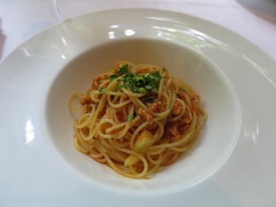 入口に着くと案内係の人が店内まで案内してくれます。通された席は旧食堂だった様な窓側の席でした、3000円のコースにはサラダ、パスタ、メイン、デザート、ワンドリンクがついており、ボリュームもそれなりにあり、かつ美味しく非常にリーズナブル。