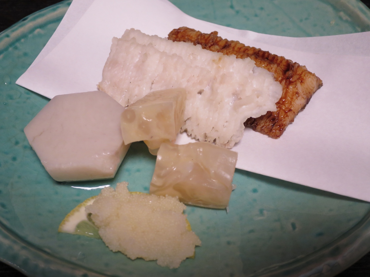 吉田神社の参道にある京都大学の正門の斜め対面にある小さな天ぷら店です。京都大学に勤める人に聞き夜訪れました。店内はカウンタ席とテーブルが2つ。大学の人が良く使うお店のおようです。天ぷらのお店ですが、鱧づくしのコースを頼みました。湯通しした鱧、鱧のかば焼き、鱧の天ぷら、鱧の天丼等々鱧を堪能。一緒に出てきたとうもろこしの天ぷらも美味しかったです。
