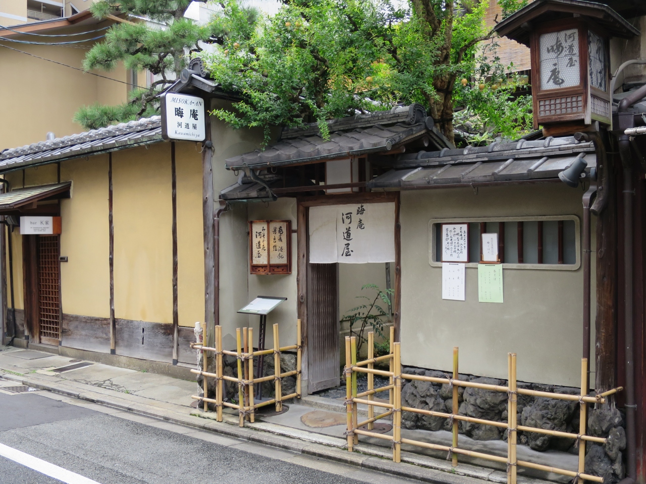 京都と言えば蕎麦の美味しい所で、その中でも、尾張屋と1,2を争う店がこの晦庵 河道屋です。御池通りから麩屋町通を入った所に京都らしい店構えのお店です。