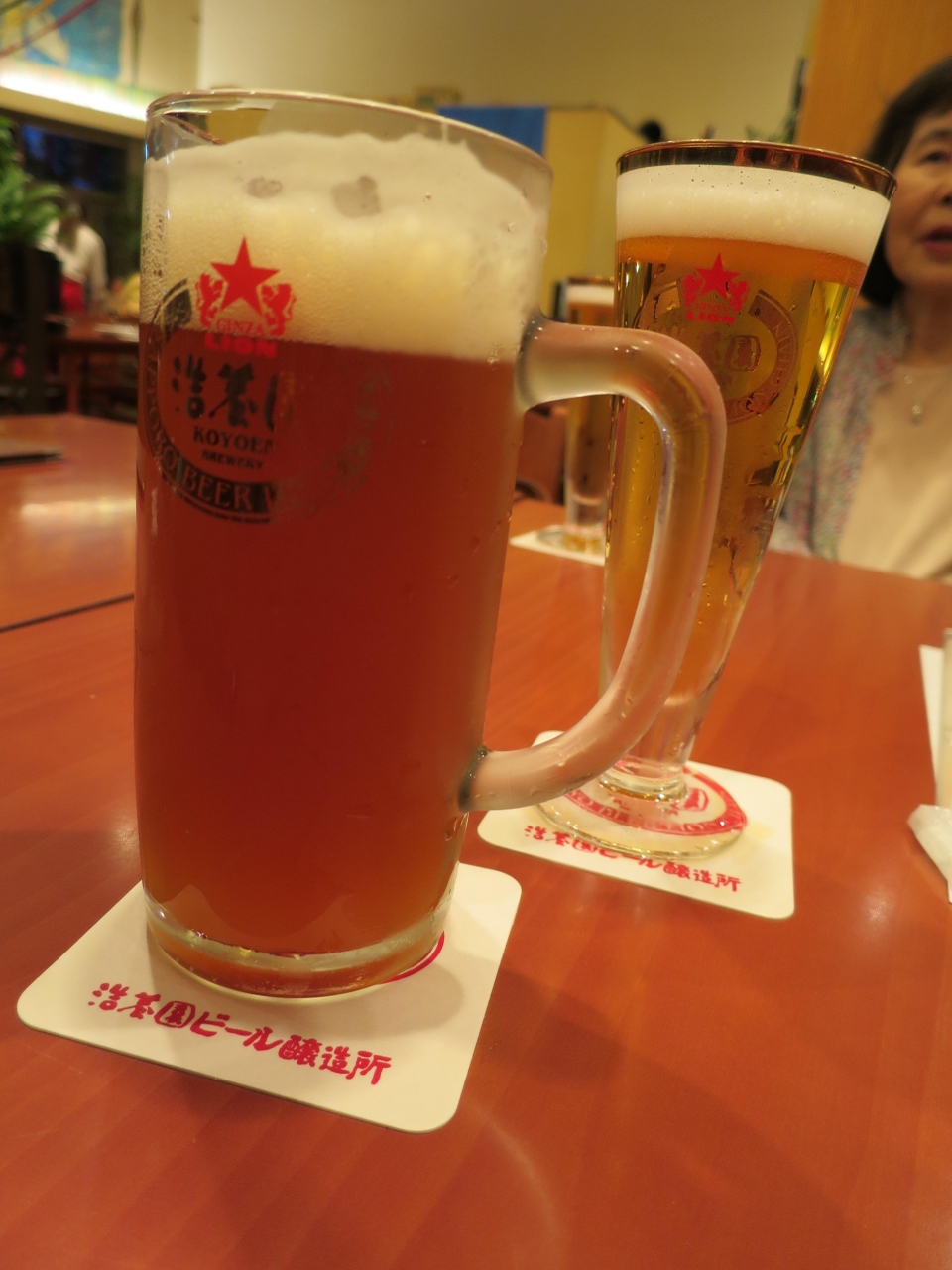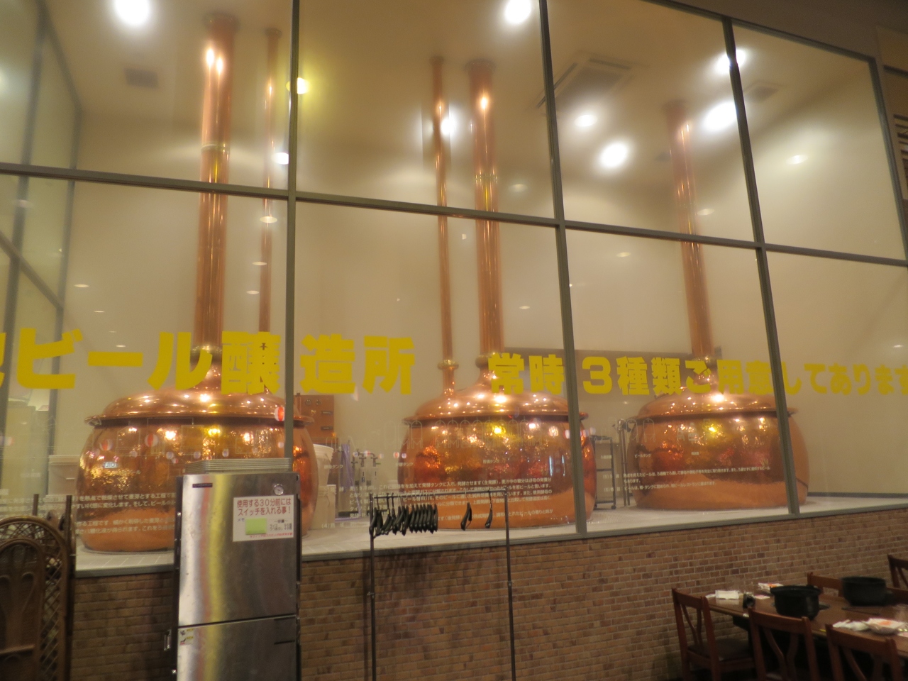地ビールは「名水の雫」「小麦の夢」「褐色の星」の3種あり、すべて併設の醸造所で作られています。苦いのが好きな人は「褐色の星」がお奨めです。