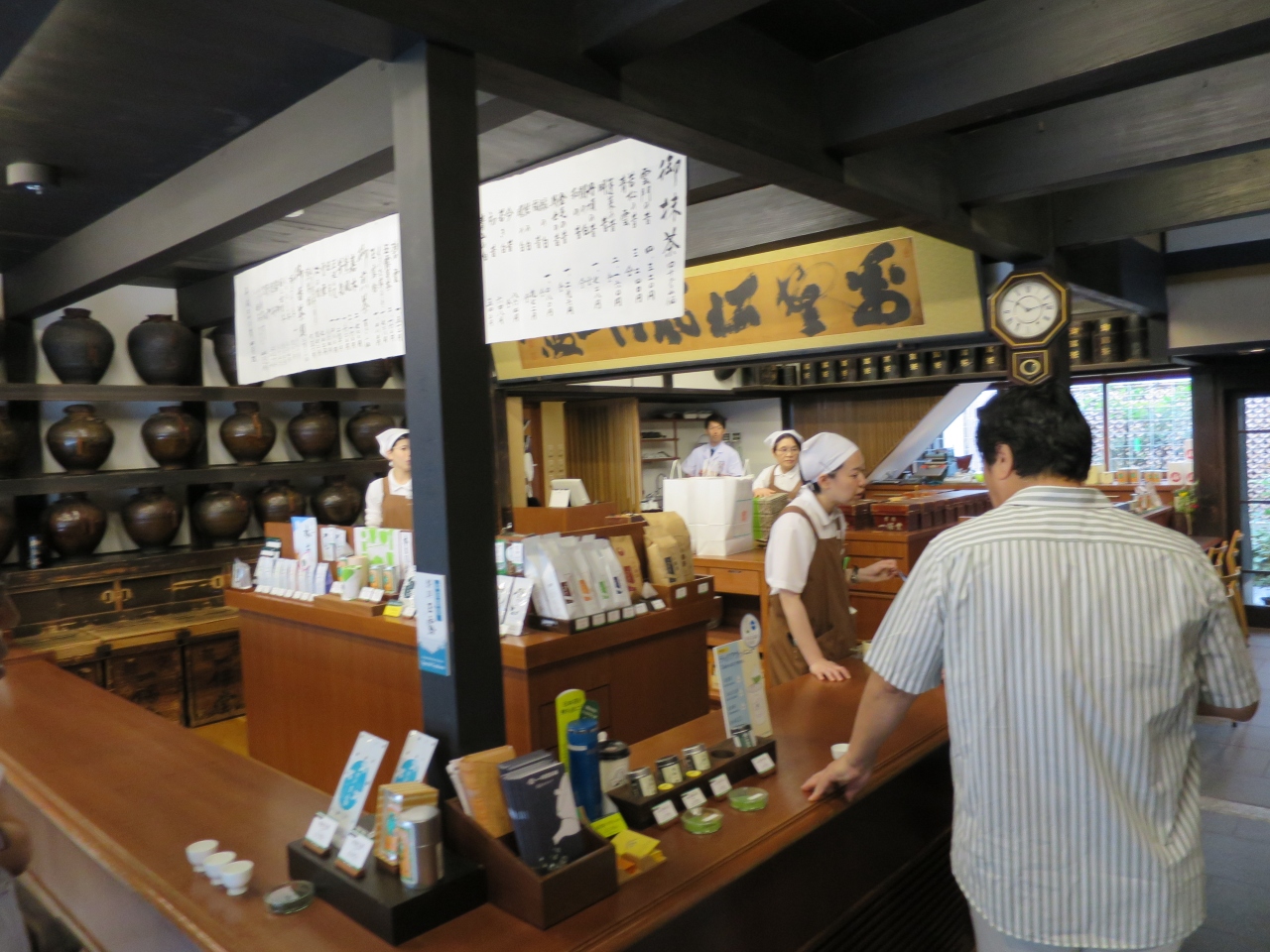 全国の夕デパートにも出店している京都のお茶の老舗、一保堂茶舗の本店が京都市役所北の寺町通りにあります。建物の外観は茶の暖簾が掛かり、昔ながらの伝統を感じます。店内も茶壺が並び、お茶の対面売りが行われ、利き茶も出来ます。昔のお茶屋さんは何処でもこんな感じだったのでしょうか?
