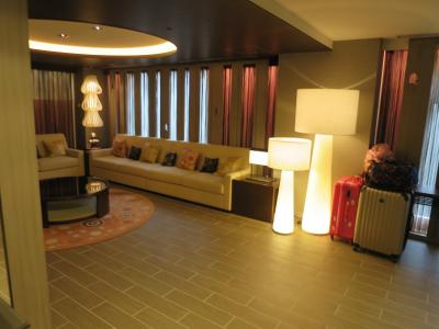 京都 四条の繁華街、麩屋町通りを南に入った所にある新しいホテルです。入口は丁度タイムズパーキンの正面にありますが、奥まった所にホテルらしくない入口があり、一瞬迷いました。ホテルには駐車場はなく、またホテル入口前の道路は車を停車しづらい道なので、車の方にはあまりお勧めできません。