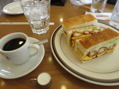 名物のアイスコーヒーとエビフライサンドを注文。アイスコーヒーは氷の入ったグラスに熱いコーヒーをいれ冷やして飲みます。エビフライサンドはこれぞ名古屋の味と言った感じで、また食べたくなりました。