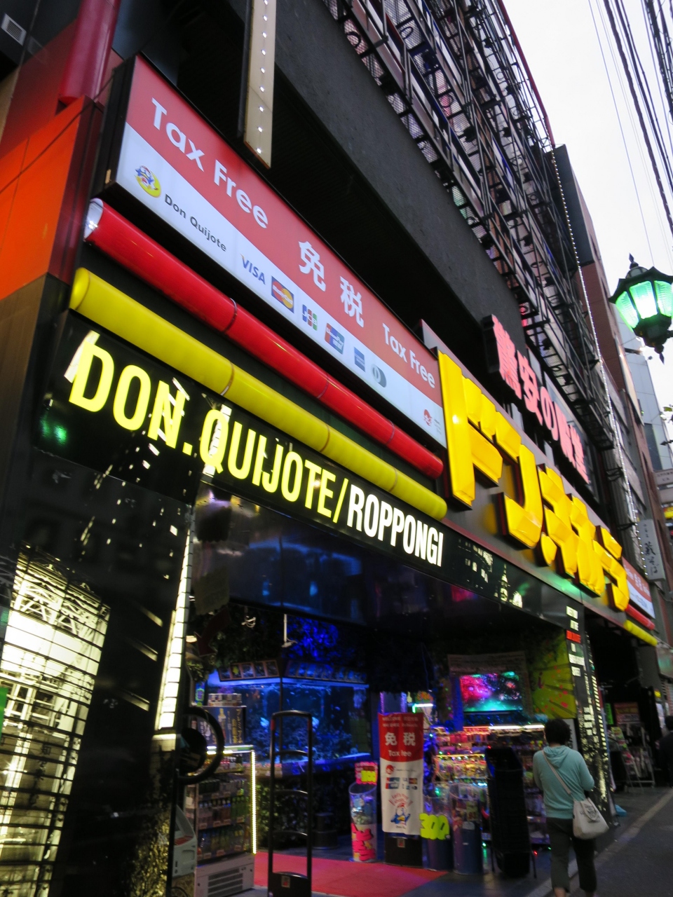六本木の外苑東通り沿い、六本木5丁目交差点近くに、驚安の殿堂で知られるドン・キホーテがあります。店内はどこのドン・キホーテと大差ありませんが、六本木と言う場所がら周辺の店と比べると安いです。