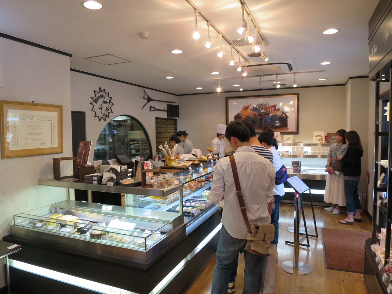 ケーキを買いに店に入ると、ケーキのショーケースの前は買い待ちの人が並び、ケーキが見られない程人気です。