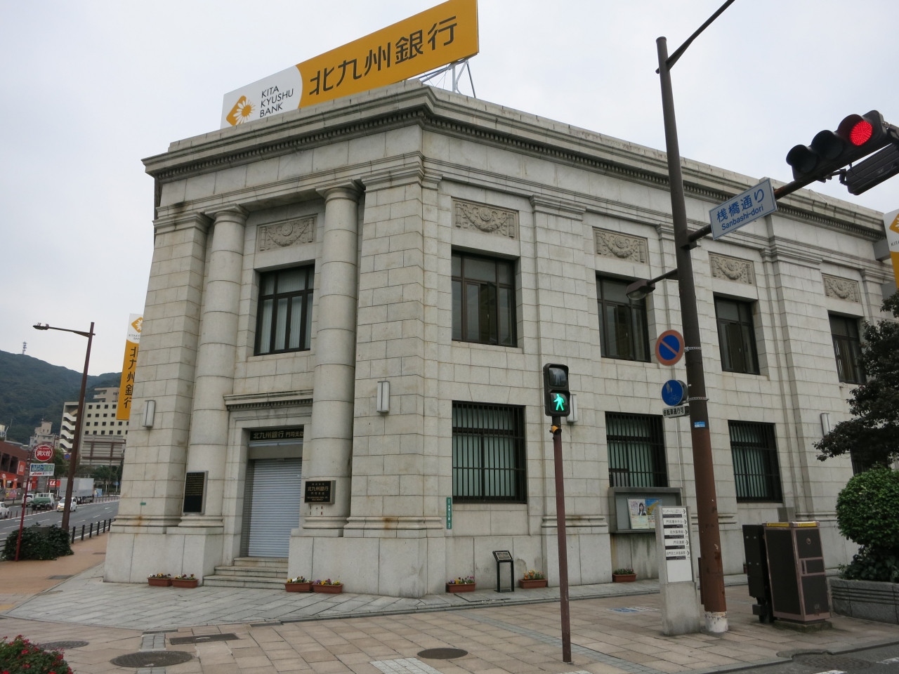 国道3号線の門司港駅入り口交差点角に石造りの北九州銀行があります。つい最近までは山口銀行だった建物です。