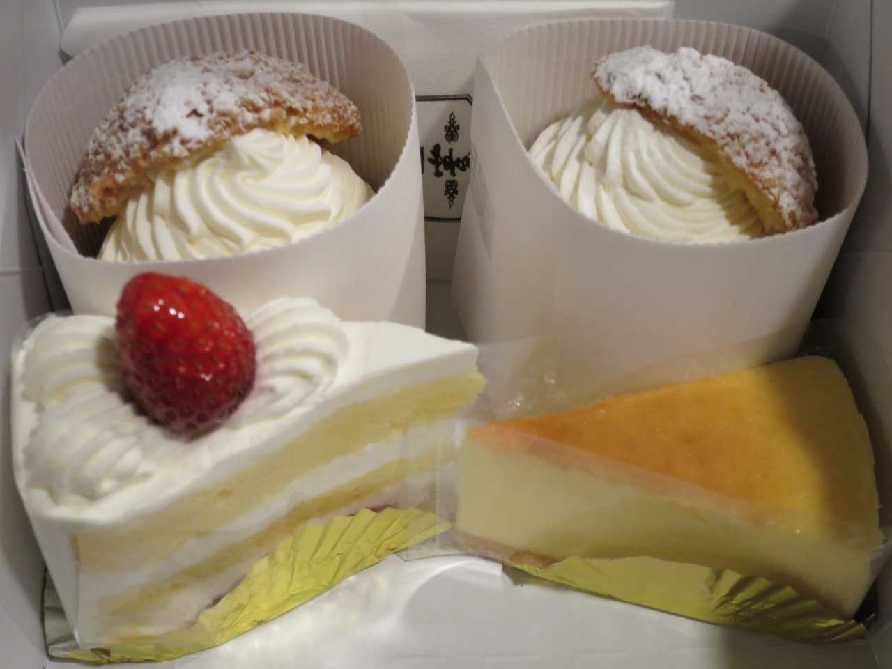 2つケーキを買って帰ろうと思っていたのですが、シューパイがとてもおいしそうに見え、価格も全体的に安く、贅沢に4つ買ってしまったほどです。