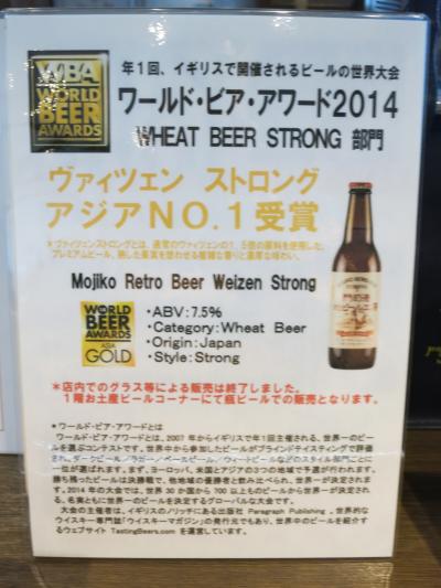イギリスで開催されたワールド・ビア・アワード2014でアジアNo.1に選ばれたヴァイツェン ストロングを買いました。芳醇な味わいのアルコール度の高いビールは、ドイツでのビアホールで飲んだビールに似ており、No1に選ばれるのも分かる気がしました。