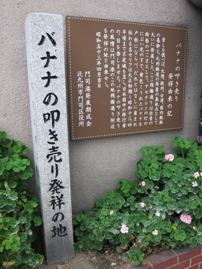 門司港駅から線路を渡った先にある旅館の脇に「バナナの叩き売り発祥の地」の石碑が立っています。