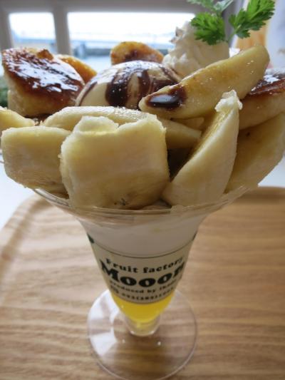 メニューには色んなパルフェやフルーツジュースがありますが、バナナの叩き売り発祥の地である門司限定メニューの焼きバナナパルフェを頂きました。バナナは美味しいですが、少し食べずらい。
