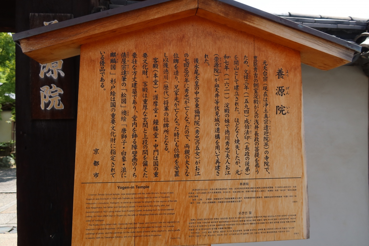 拝観時は案内の方が色々と説明をしてくれ、とても分かり易く、勉強にもなりました。養源院と言う名は、浅井長政の戒名そのものなんですね。- 旅行時期
