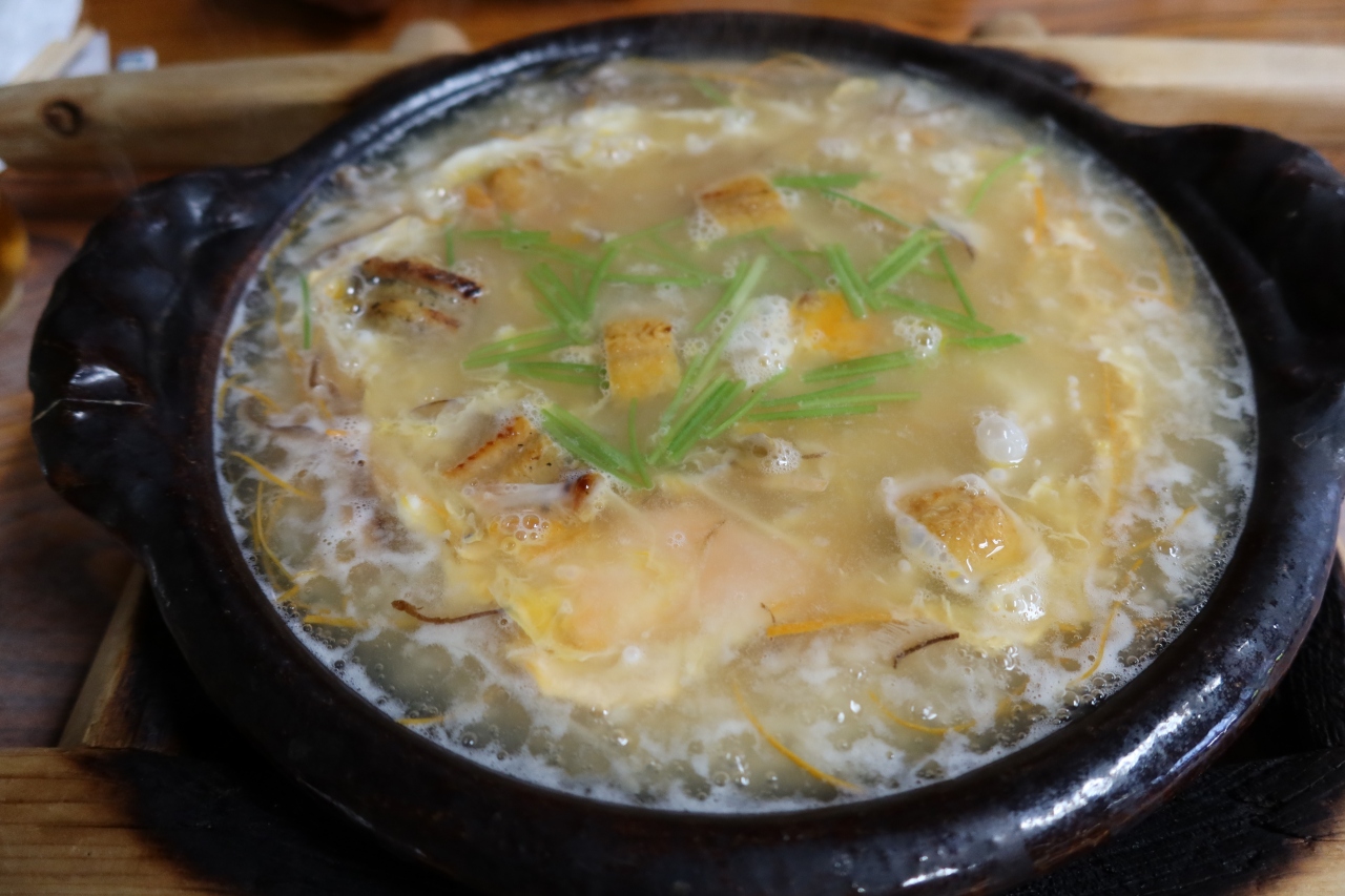 大和大路七条交差点を西に30m程行った所にわらじやがあります。通りからは店の中は見えませんが、暖簾を潜り奥に進むと小庭を囲む様に建物があります。通された部屋は2階の座敷席で京都らしい雰囲気があります。頂いたのは勿論この店の名物 うぞうすい。白焼きの鰻、餅、卵、野菜の入ったうぞうすいはシンプルですが、味わいがあり、夏食べてもとっても美味しいです。流石400年近く続く老舗です。