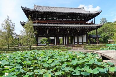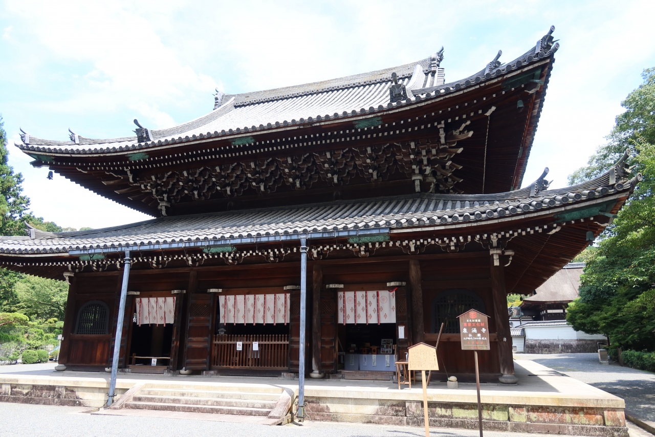 東福寺は東山にある臨済宗の寺院です。紅葉がきれいなことで知られる寺院ですが、紅葉の時期でなくても見応え充分です。見所の一つは紅葉で知られる通天橋。今夏は風車があしらわれ夏らしい飾り付けがされており、インスタ映えする風景がありました。三門は国宝にしてされており、その大きさに驚きます。方丈は「八相の庭」と呼ばれる4つの庭はそれぞれ特徴があり見物。それ以外にも、東司や浴室など僧侶の生活がどのような物であったかが見られ面白い。広い境内なので、回るのは大変です。