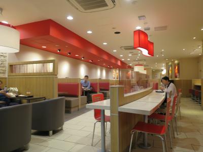 地下鉄六本木駅に直結したラビロス六本木の地下1階にあるハンバーガーチェーンのバーガーキング 六本木店はあります。朝食を摂るのの地下鉄を降り入りました。驚いたのは店舗の広さで、間口の倍程の奥行きがあり、椅子なども贅沢な造りでゆったりくつろげます。待ち合わせに使うのも良いと思います。