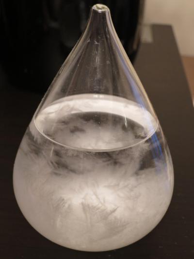 ここで気に入って購入した商品がテンポドロップ。天気の変化で、ガラスの容器に閉じられたエタノールに溶かした樟脳の結晶が変化するオブジェ。