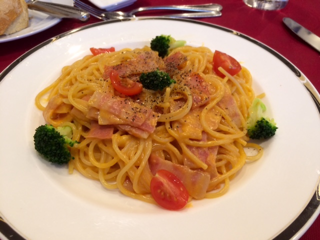 南欧料理と行っても結局はイタリア料理でパスタとピザが主料理になります。ピザは薄い生地で、パスタよりもピザの方が美味しいと思いました。