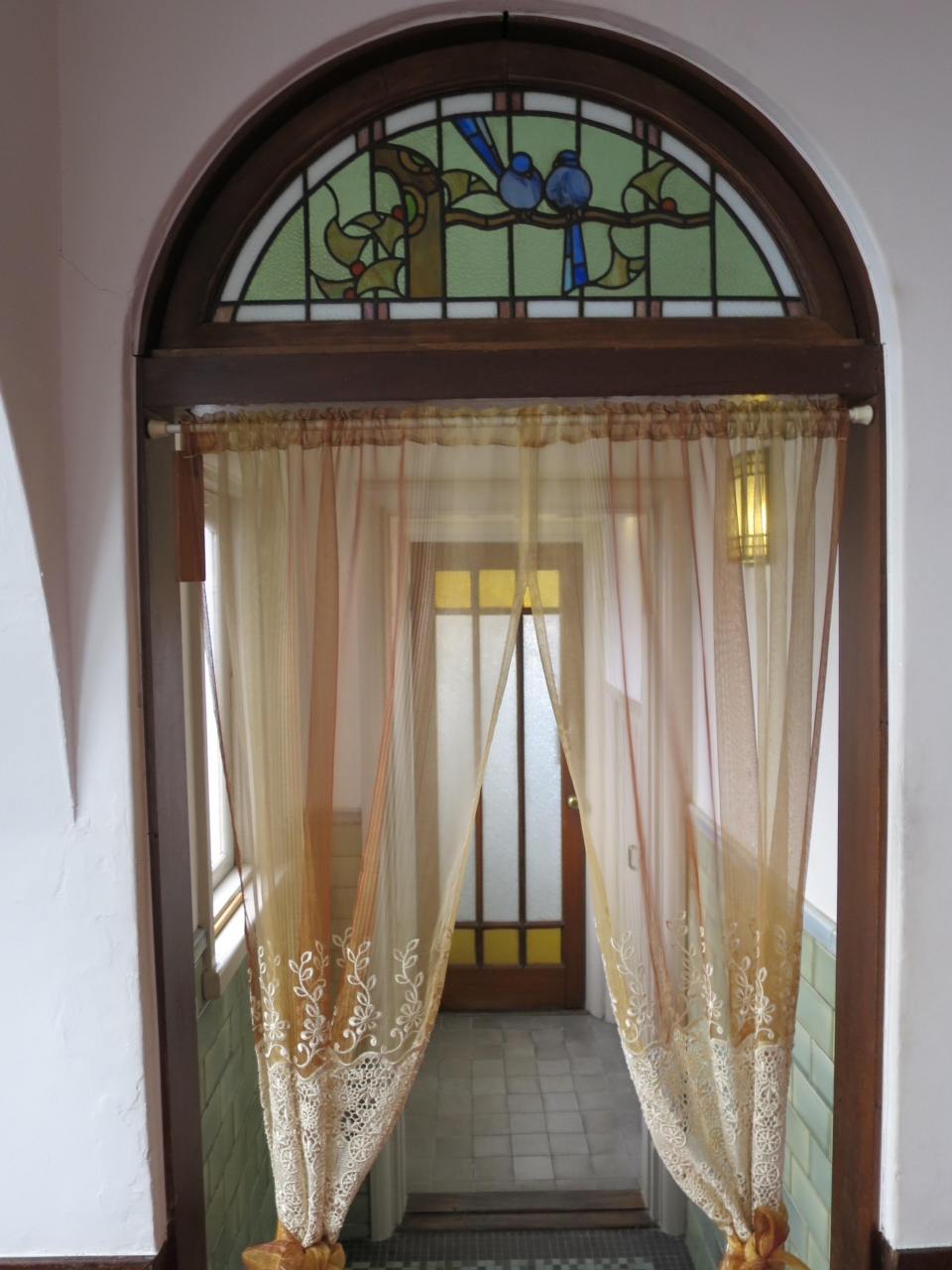 名古屋 主税町にあるオレンジ屋根の和洋折衷の建物です。大正9年の竣工の2階建てで川上貞奴と福沢桃介がこの家で暮らしていました。入館するとホールがあり、ステンドグラスがとても印象的な羊羹、奥に行くと畳のある純和風の部屋があります。