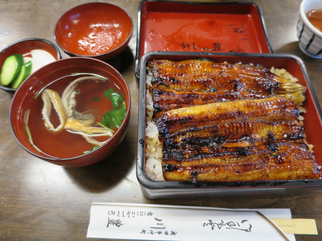 上鰻重と肝吸い(3000円)を戴きました。やっぱり鰻重は最高に美味しい日本料理です。- 旅行時期