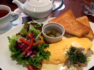 私がチェダーチーズのオムレツ、友人がローストビーフを戴きました。オムレツはふわふわ感たっぷりでした。そして、ここではフォートナムメーソンのケーキが食べられます。これがとっても美味しかった。ケーキセットだけでもお奨めです。- 旅行時期