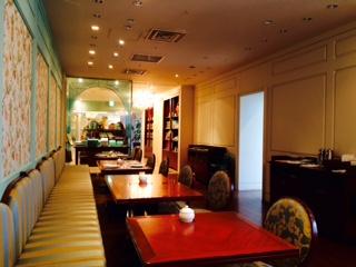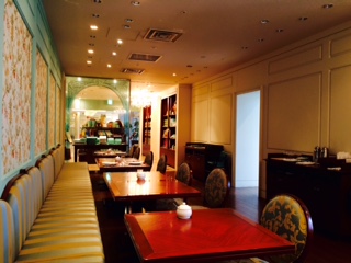 店の入口辺りは紅茶や、クッキー・ジャム等の販売店舗で、その奥がブランド・カラー「オー・デ・ニール」色で統一されたテールームがあり、ランチしてきました。