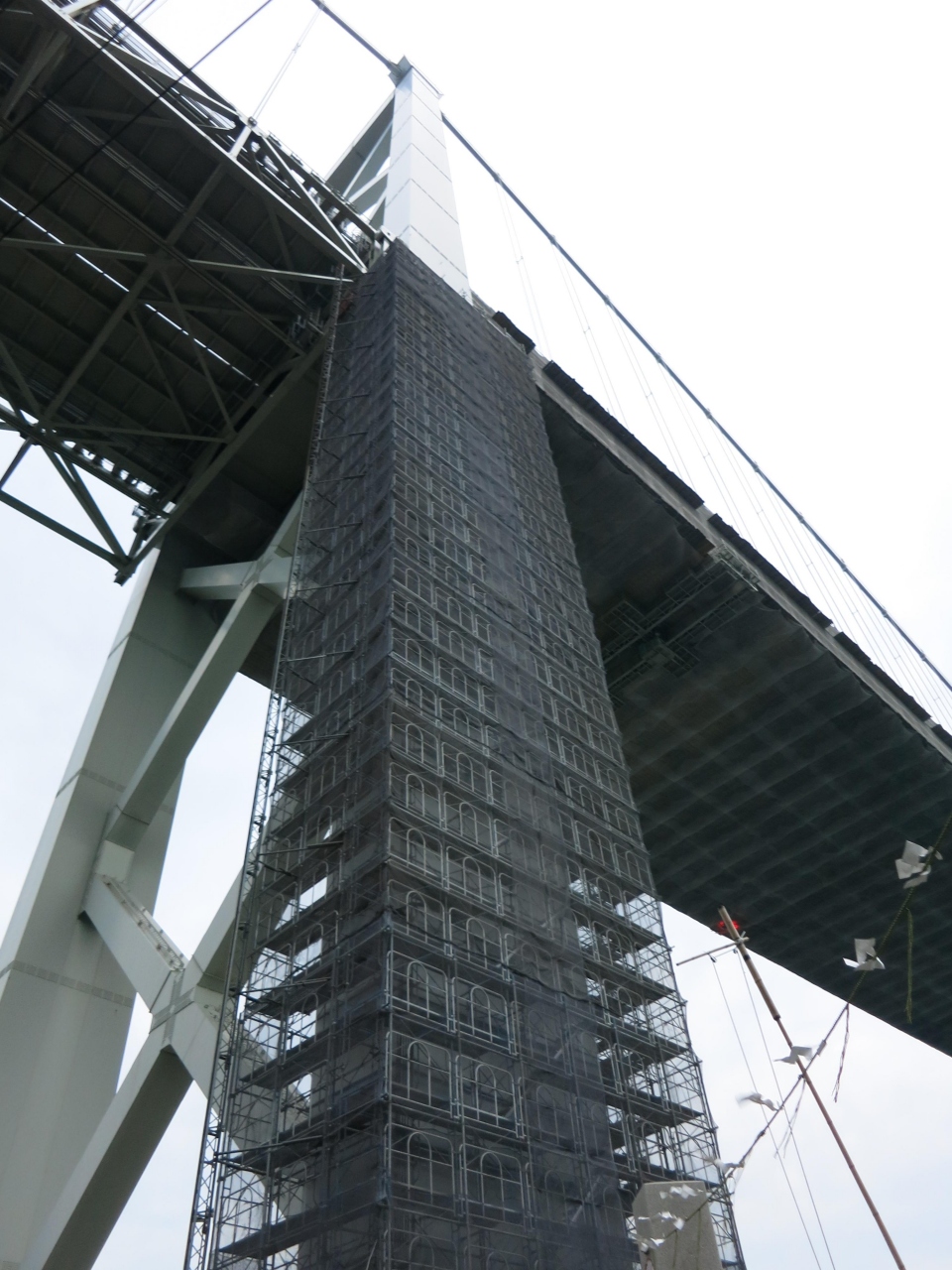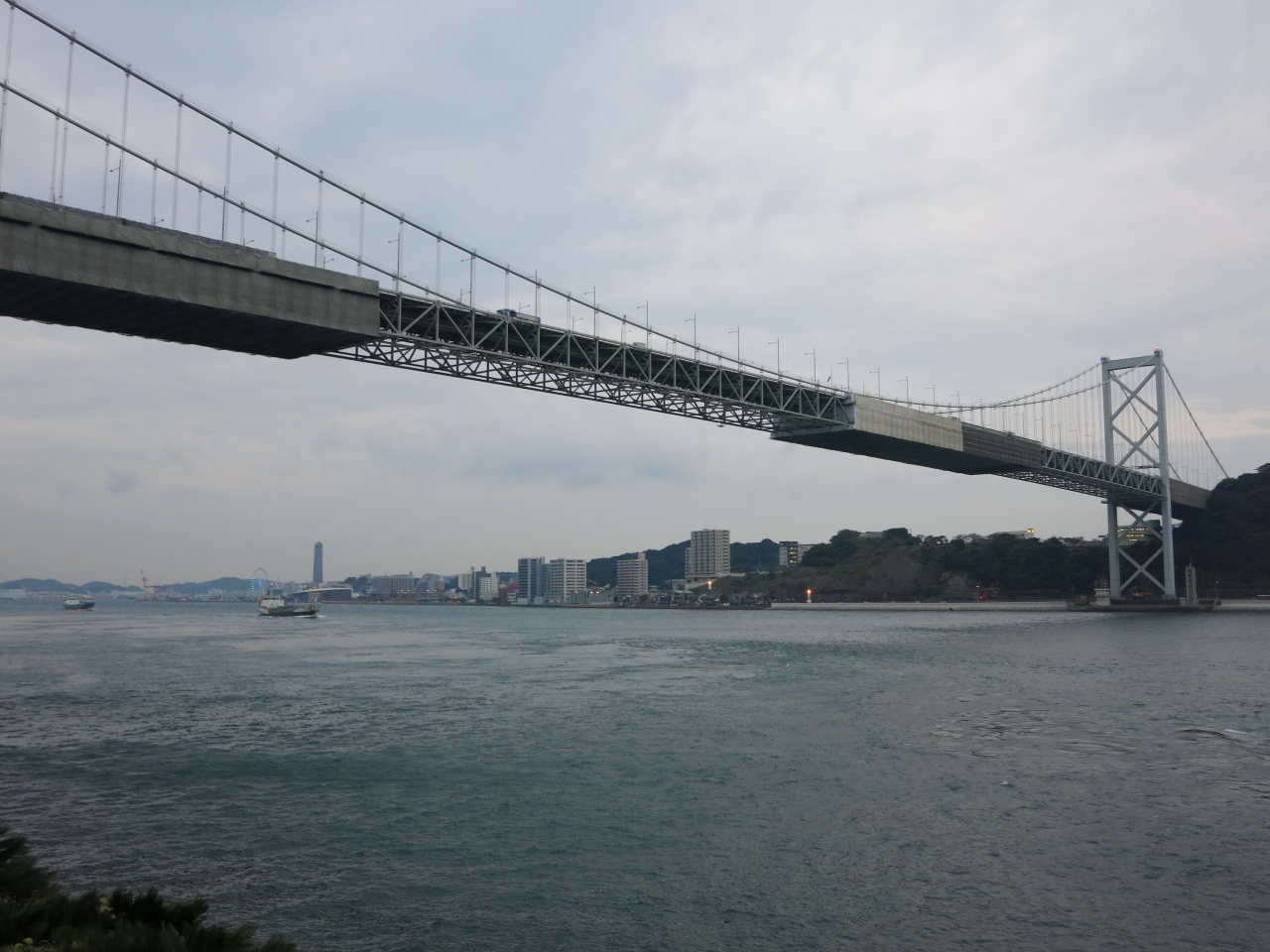 温水プール横の無料駐車場に車を停め、和布刈神社の先の関門橋の下までめかり観潮遊歩道を歩きました。所々のベンチが置かれ、よく整備された遊歩道からは、間近に関門海峡の潮の流れを感じることができます。関門橋の真下からは、関門橋を真上に拝み見れ、関門橋がいかに大きな建造物かが良くわかります。また、関門トンネル人道もこの遊歩道を通って行くことができます。- 旅行時期