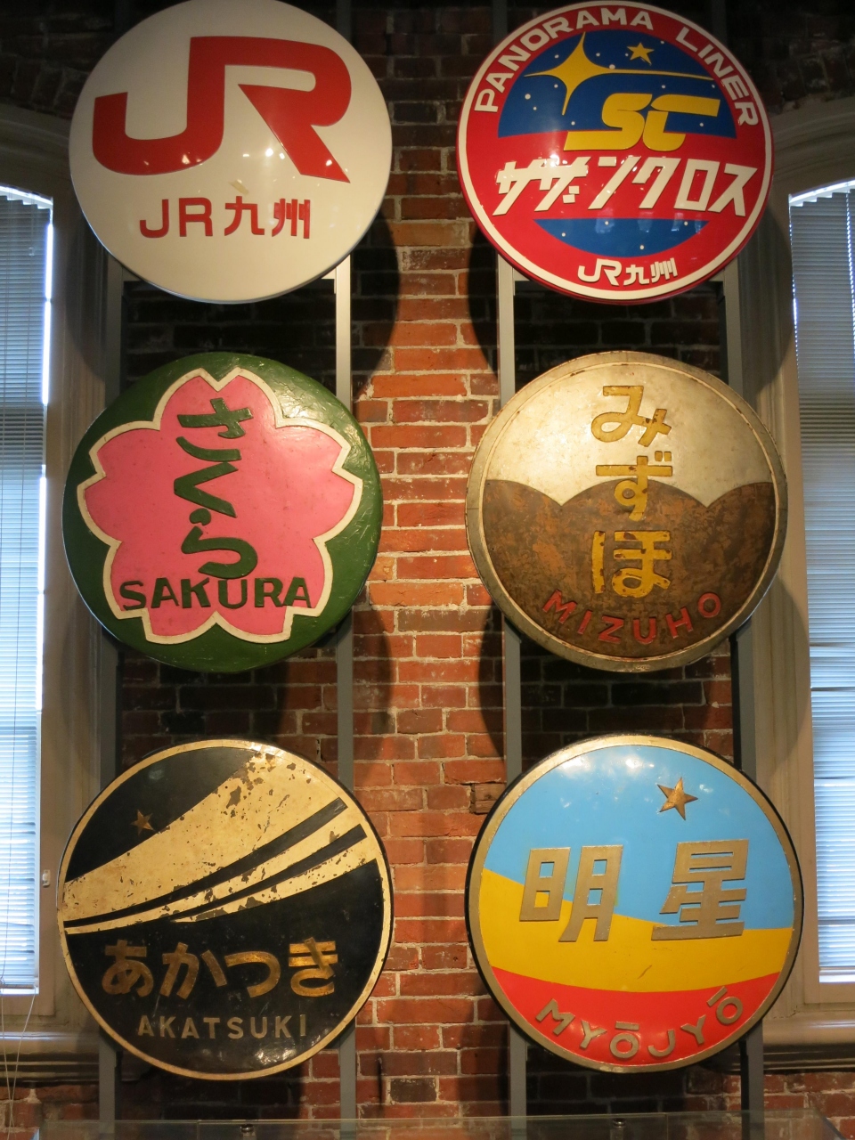 列車の展示場から上に上ると旧九州鉄道本社として使われたレンガ造りの本館があり、ジオラマやヘッドマーク等の鉄道遺産が並びます。