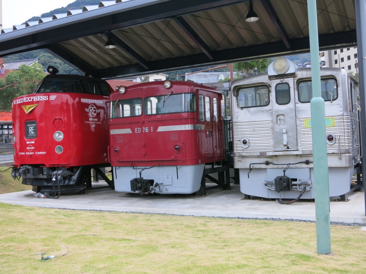 門司港駅は九州の起点となった記念すべき場所です。その並びに九州鉄道記念館があります。入り口近くには蒸気機関車、電気機関車が並び、奥に行くと九州管内を走った往年の特急や寝台車が一列に並んで展示されています。