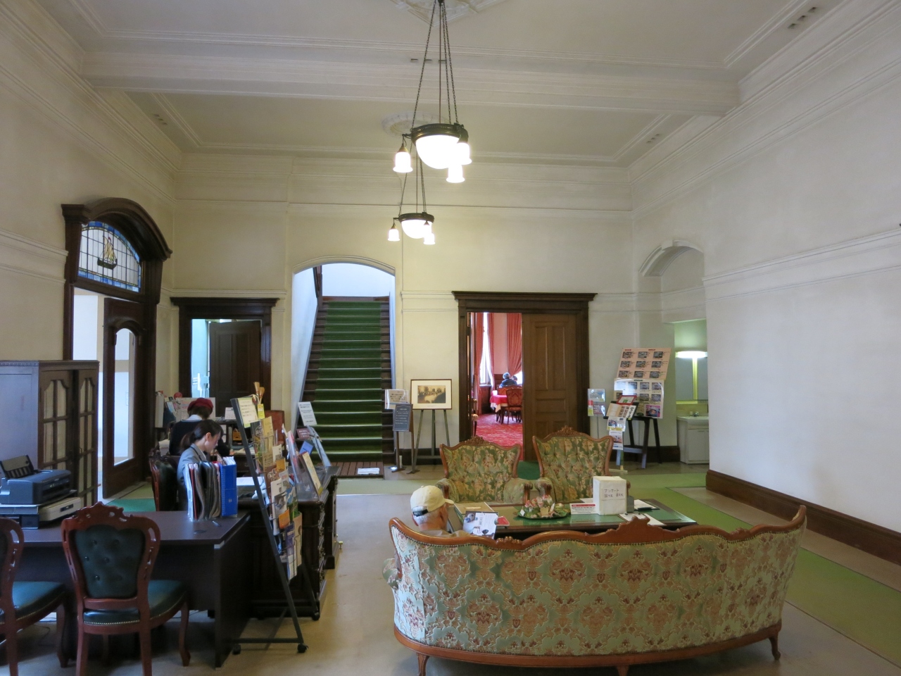 内部は無料で公開されているのですが、格調高い入り口でほんとに入って良いのかな?と思うほどです。1Fには個室の部屋がいくつかあり、2Fに上がると舞台のある大広間が見られます。3Fは公開されていません。