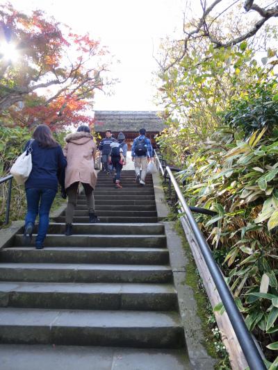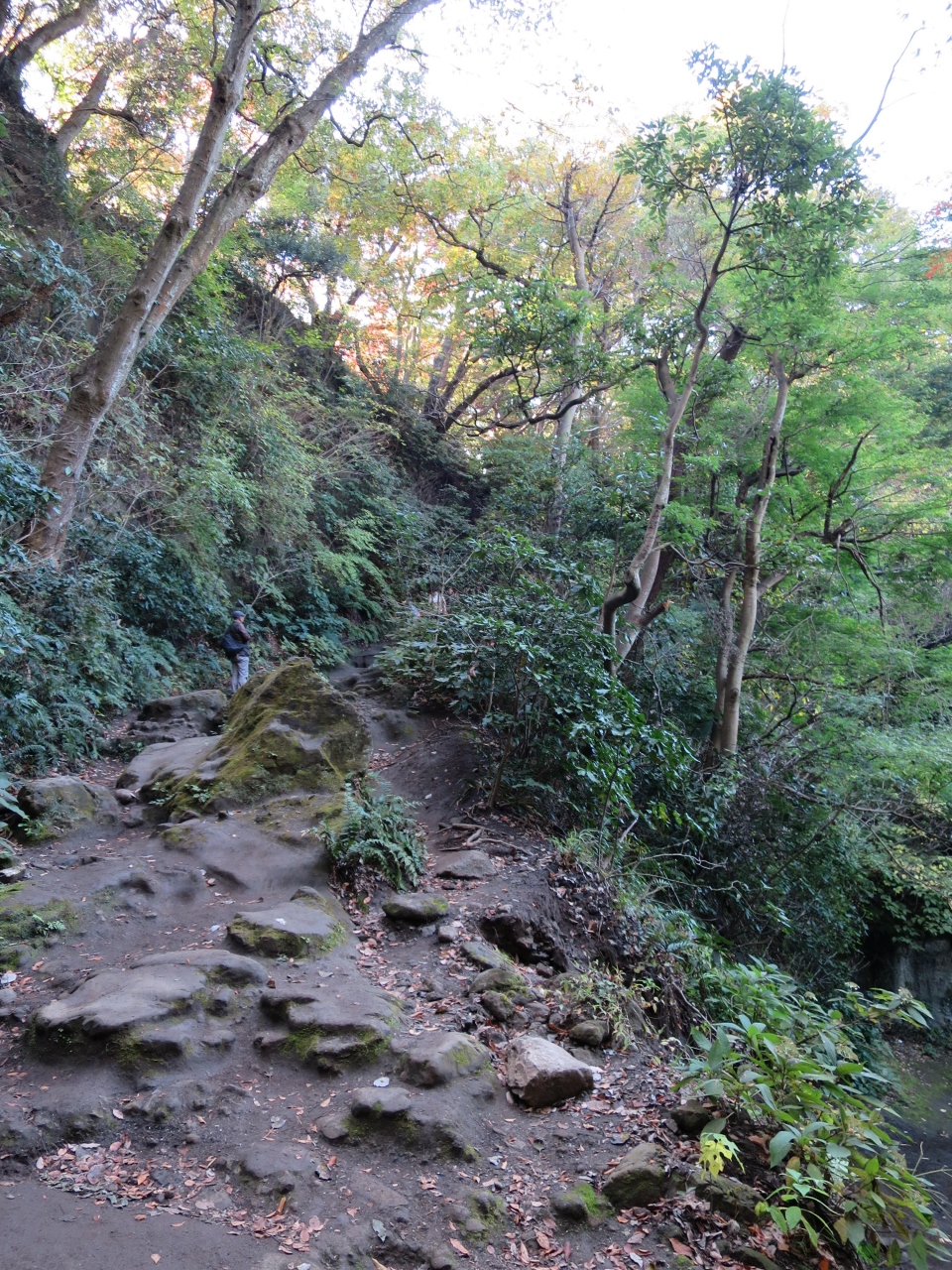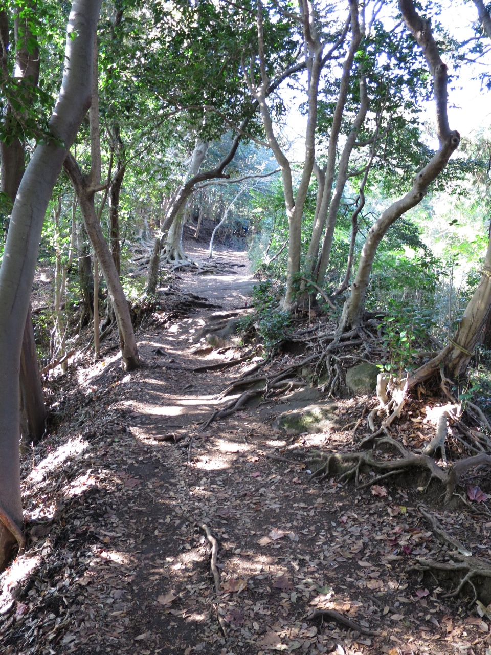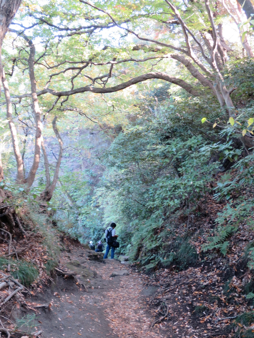 浄智寺脇の道を進んで行くと道が細くなり、特に看板も立っていなかったので、少し不安でしたが、先に進み起伏のある山道を歩くと逆方向から来られた人がいたので安心しました。源氏山に着くと一変に人が増え、鎌倉大仏方面にさらに進むと途中から鎌倉市街を見渡せるところもあります。最後は坂を下り、トンネル脇の道路に出て、道路を進むと鎌倉大仏にたどり着きます。
